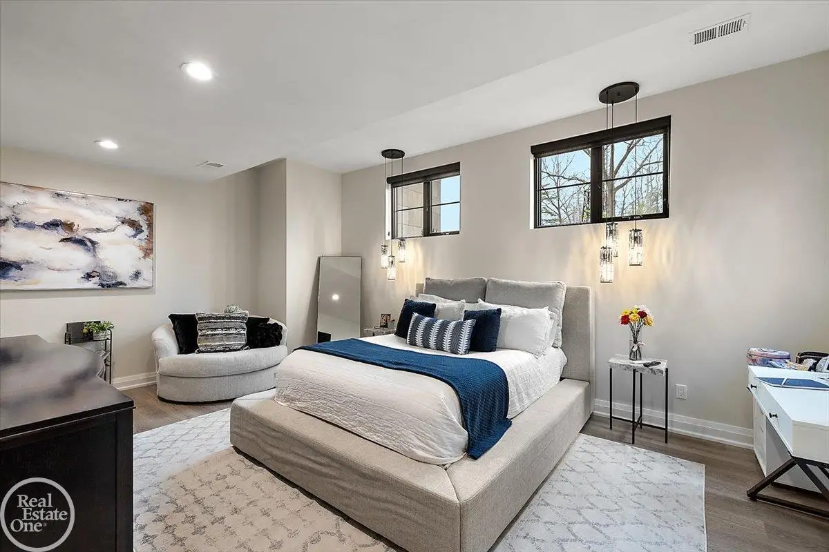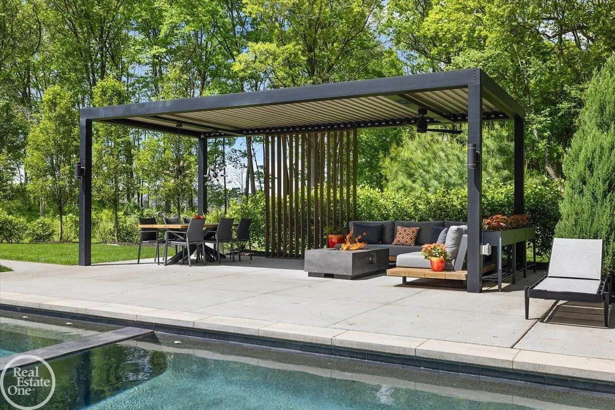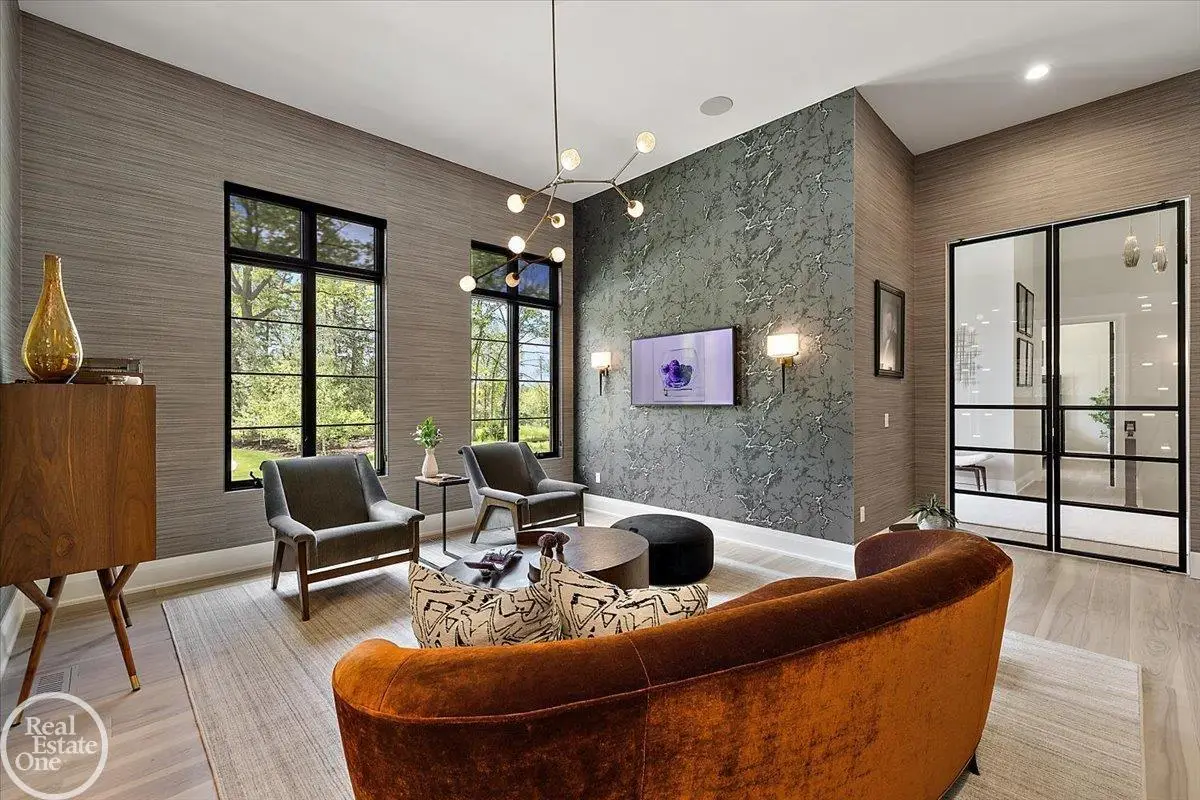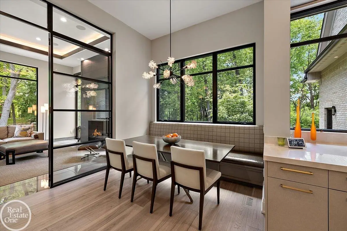 Experience unparalleled modern luxury in this custom-built 2021 Cranbrook masterpiece. Featured in Detroit Design Magazine, this home showcases exquisite interior design by Tutto Interiors, boasting the finest materials and craftsmanship throughout. Situated on 3 private wooded acres, this residence offers a serene escape with an urban edge. The open floor plan, highlighted by soaring 14-foot ceilings and expansive walls of windows, floods the home with natural light and breathtaking views. The gourmet kitchen, equipped with Thermador appliances, is an entertainer's dream. Relax in the stunning great room with its floating fireplace or unwind in the four-seasons glass room, featuring an industrial loft aesthetic and a natural fireplace. The primary suite offers a spa-like experience with a luxurious bath, steam shower, and dual walk-in closets, all overlooking the tranquil wooded landscape. The finished walk-out lower level leads to a 35x12 inground pool, complete with a custom pergola and firepit, perfect for outdoor gatherings.