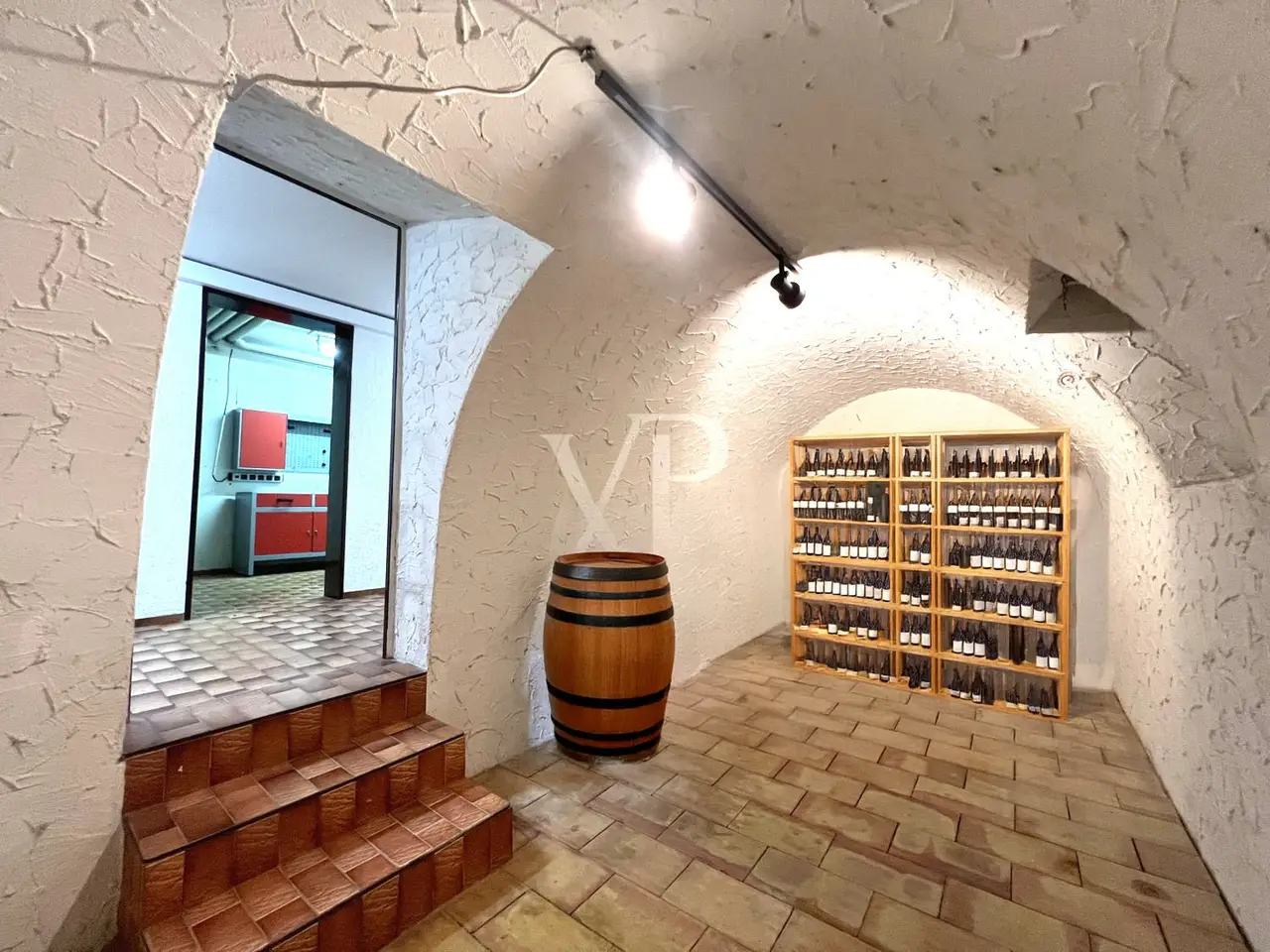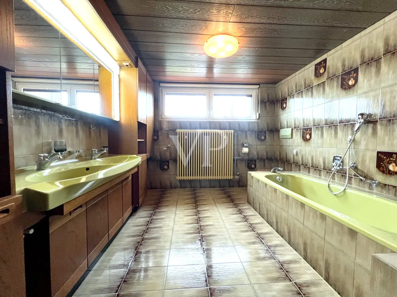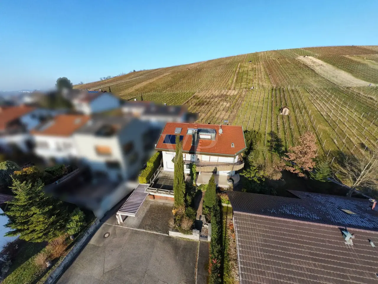 This spacious property in a hillside location with a plot area of approx. 516 m² and a living area of approx. 345 m² offers an impressive amount of space. Built in 1980, the detached house with granny apartment is in a well-kept condition and is characterized by its high-quality furnishings. The house has a total of 5.5 rooms, including 4 bedrooms and 3 bathrooms. The residents also have 3 balconies, a south-facing terrace and a shady north-facing terrace to relax and enjoy. Highlights of the house include a swimming pool and a sauna with adjoining shower, which are part of the wellness area. The property also boasts a wine cellar, an outdoor and indoor fireplace and a granny apartment with a living space of approx. 53 m².The granny apartment has a separate entrance and its own south-facing terrace. The large living room/bedroom covers approx. 31 m². There is also an open kitchen, a shower room and a practical storage room. A separate carport parking space belongs to the granny apartment. The connection from the main apartment to the granny apartment could be realized through an opening in the hallway. The main living area with kitchen, living room and study or children's room is located on the ground floor. The kitchen is open-plan and offers space for a seating area. The study/dining room is directly adjacent to the large living room. The open fireplace is another highlight. The rooms are always brightly lit thanks to the large window fronts. The large south-facing terrace can be accessed from the living room and kitchen. There is also a utility room and a guest WC on the same living level. There is a further terrace on the north side of the house with the option of hanging laundry there and a direct view of the vineyards from the seating area. The main entrance to the house is located here. The high-quality entrance door is a clear indication of the quality of the house. In the stairwell, the artistically forged banisters that run up to the top floor immediately catch the eye. There are two bedrooms in the converted attic area.The large master bedroom with dressing area has a spacious en suite bathroom. This is the main bathroom of the house with bath and shower. The adjoining children's or guest bedroom also has its own shower room. Both rooms have balcony access. Various spacious mezzanine areas in the sloping ceilings provide ample storage space. The property is equipped with modern central heating, which was installed in 2005. In addition, a solar system from the same year ensures a sustainable energy supply. A double garage from 1987 and a carport from 2005 are available for vehicles. Bicycles or even motorcycles can be parked in the double garage. The property has been constantly maintained and renovated, for example the windows were replaced in 2007 and the balconies refurbished in 2004. In addition, the floor coverings in the hallway area were newly laid in 2000. The property is easy to maintain. The focus is on the large terrace areas and the countryside views. Overall, this property presents itself as a family-friendly and comfortable home in a quiet, well-kept residential area with a view of the countryside. Both the spacious floor plan and the wide range of wellness and recreational options make this detached house an attractive proposition. Interested parties looking for a well-kept and well-thought-out living concept should take a closer look at this property.