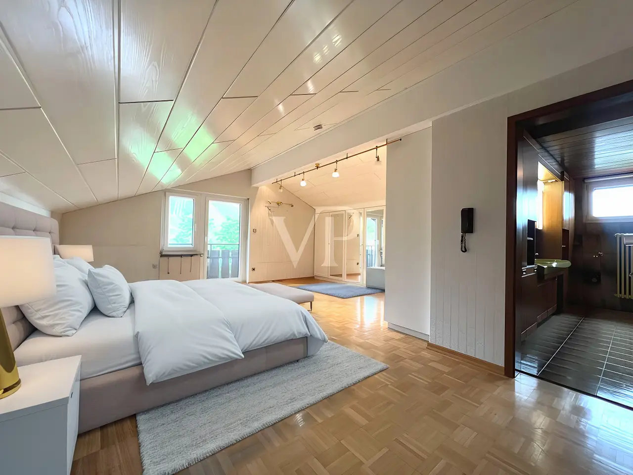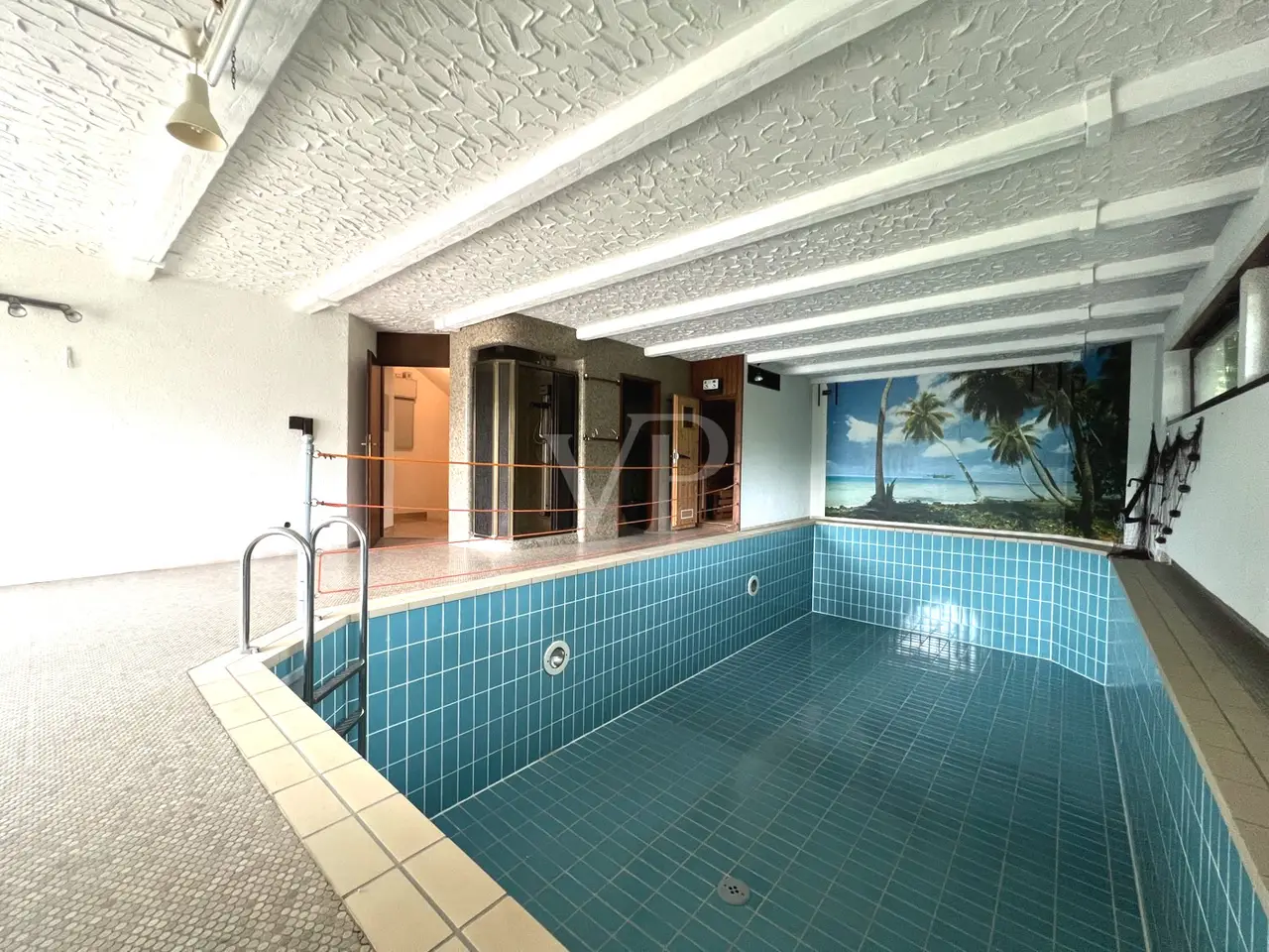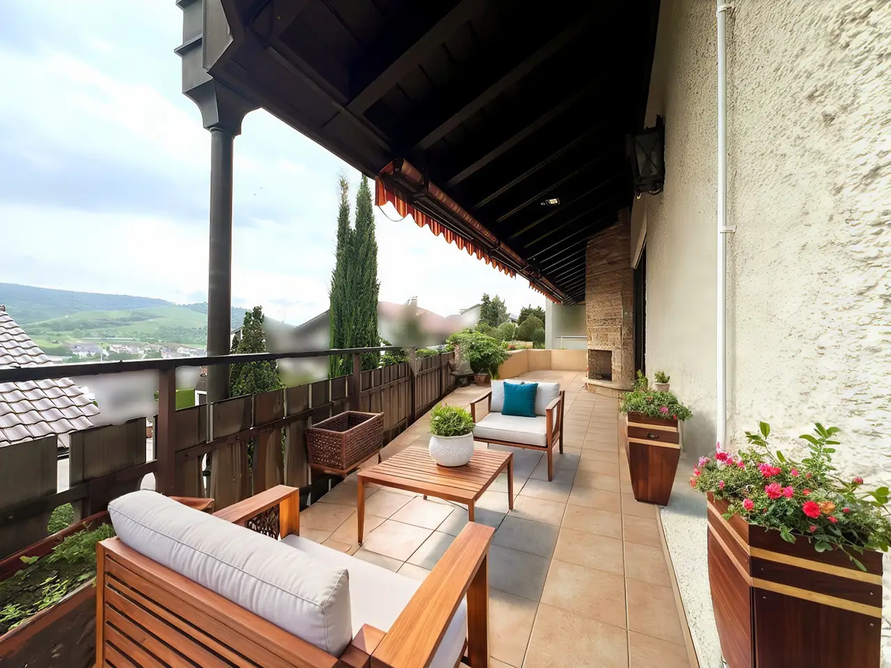 This spacious property in a hillside location with a plot area of approx. 516 m² and a living area of approx. 345 m² offers an impressive amount of space. Built in 1980, the detached house with granny apartment is in a well-kept condition and is characterized by its high-quality furnishings. The house has a total of 5.5 rooms, including 4 bedrooms and 3 bathrooms. The residents also have 3 balconies, a south-facing terrace and a shady north-facing terrace to relax and enjoy. Highlights of the house include a swimming pool and a sauna with adjoining shower, which are part of the wellness area. The property also boasts a wine cellar, an outdoor and indoor fireplace and a granny apartment with a living space of approx. 53 m².The granny apartment has a separate entrance and its own south-facing terrace. The large living room/bedroom covers approx. 31 m². There is also an open kitchen, a shower room and a practical storage room. A separate carport parking space belongs to the granny apartment. The connection from the main apartment to the granny apartment could be realized through an opening in the hallway. The main living area with kitchen, living room and study or children's room is located on the ground floor. The kitchen is open-plan and offers space for a seating area. The study/dining room is directly adjacent to the large living room. The open fireplace is another highlight. The rooms are always brightly lit thanks to the large window fronts. The large south-facing terrace can be accessed from the living room and kitchen. There is also a utility room and a guest WC on the same living level. There is a further terrace on the north side of the house with the option of hanging laundry there and a direct view of the vineyards from the seating area. The main entrance to the house is located here. The high-quality entrance door is a clear indication of the quality of the house. In the stairwell, the artistically forged banisters that run up to the top floor immediately catch the eye. There are two bedrooms in the converted attic area.The large master bedroom with dressing area has a spacious en suite bathroom. This is the main bathroom of the house with bath and shower. The adjoining children's or guest bedroom also has its own shower room. Both rooms have balcony access. Various spacious mezzanine areas in the sloping ceilings provide ample storage space. The property is equipped with modern central heating, which was installed in 2005. In addition, a solar system from the same year ensures a sustainable energy supply. A double garage from 1987 and a carport from 2005 are available for vehicles. Bicycles or even motorcycles can be parked in the double garage. The property has been constantly maintained and renovated, for example the windows were replaced in 2007 and the balconies refurbished in 2004. In addition, the floor coverings in the hallway area were newly laid in 2000. The property is easy to maintain. The focus is on the large terrace areas and the countryside views. Overall, this property presents itself as a family-friendly and comfortable home in a quiet, well-kept residential area with a view of the countryside. Both the spacious floor plan and the wide range of wellness and recreational options make this detached house an attractive proposition. Interested parties looking for a well-kept and well-thought-out living concept should take a closer look at this property.