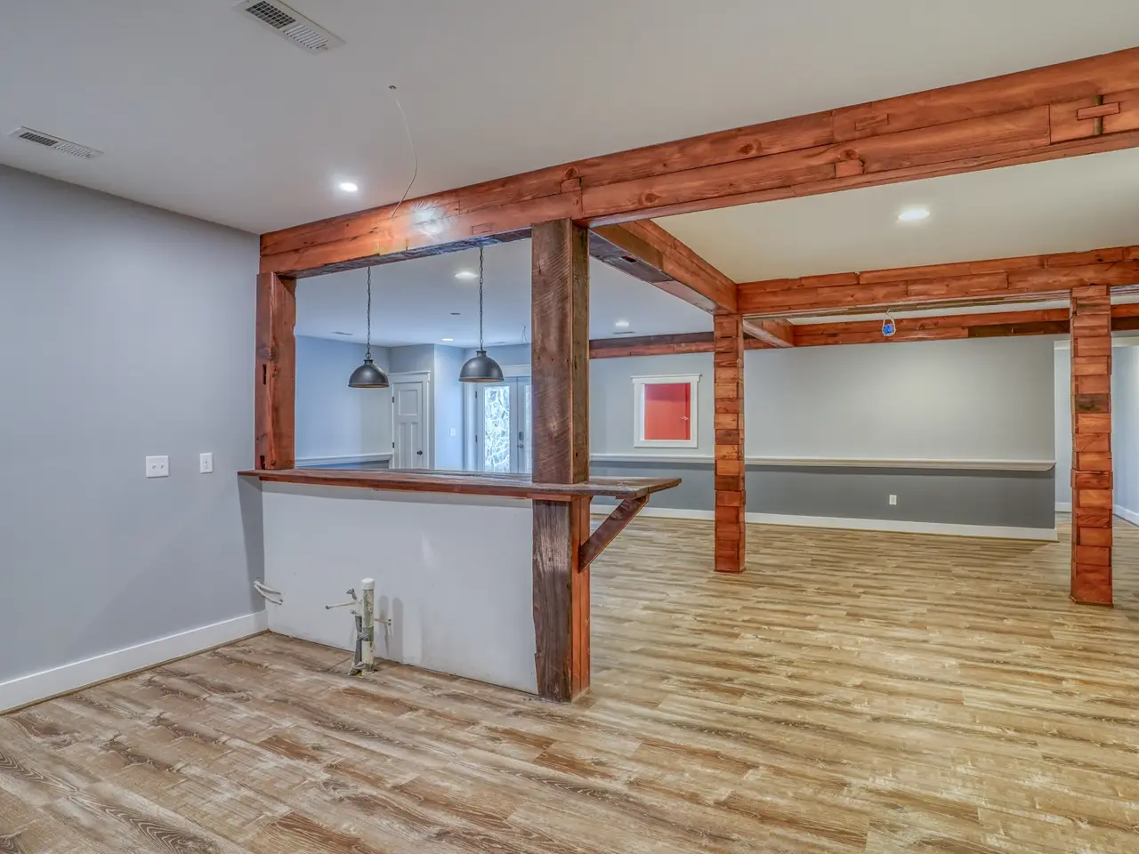 Welcome to Blackston Cove! This exquisite home offers a sprawling 5,314 sq ft on the first and second floors, along with an additional 1,400+ sq ft in the finished basement and 1,300+ sq ft unfinished basement. From the moment you pull into the driveway of this 1-acre parcel, you'll be captivated by the beautiful front porch and the convenience of an oversized 3-car garage. Step inside, and you'll be greeted by a grand 2-story foyer with a custom staircase, setting the tone for the elegance that lies ahead. To the right, a large living room leads to a versatile sunroom, offering endless possibilities for use. On the left, a spacious dining room with custom trim and a butler's pantry featuring a wet bar await your gatherings. As you venture further, an enormous 2-story family room with a stunning 2-sided fireplace invites you to relax and unwind. The back east wing of the home presents an in-law suite with a full private bath, while the opposite side showcases an amazing kitchen, hearth/breakfast area, mudroom, laundry, and a hidden wine closet—truly a dream come true. The second floor is equally impressive, featuring 4 large bedrooms, including a princess suite and a Jack and Jill bath. The owner's suite, a vast 25 x 19 space, comes with a gracious sitting area and a luxurious owner's bath with a walk-in closet that's sure to impress. This home is a masterpiece of modern farmhouse design, meticulously planned and crafted. From the handcrafted doors to the custom-burned wooden staircases and columns, every detail speaks of superior craftsmanship. The decor is simply stunning, leaving you in awe at every turn. Words can only do so much justice to this remarkable home; you must experience it for yourself. Come and see this beauty with your own eyes, and you'll understand why it's a must-see. Don't just take my word for it—schedule a tour and witness the magnificence of this custom home at Blackston Cove!