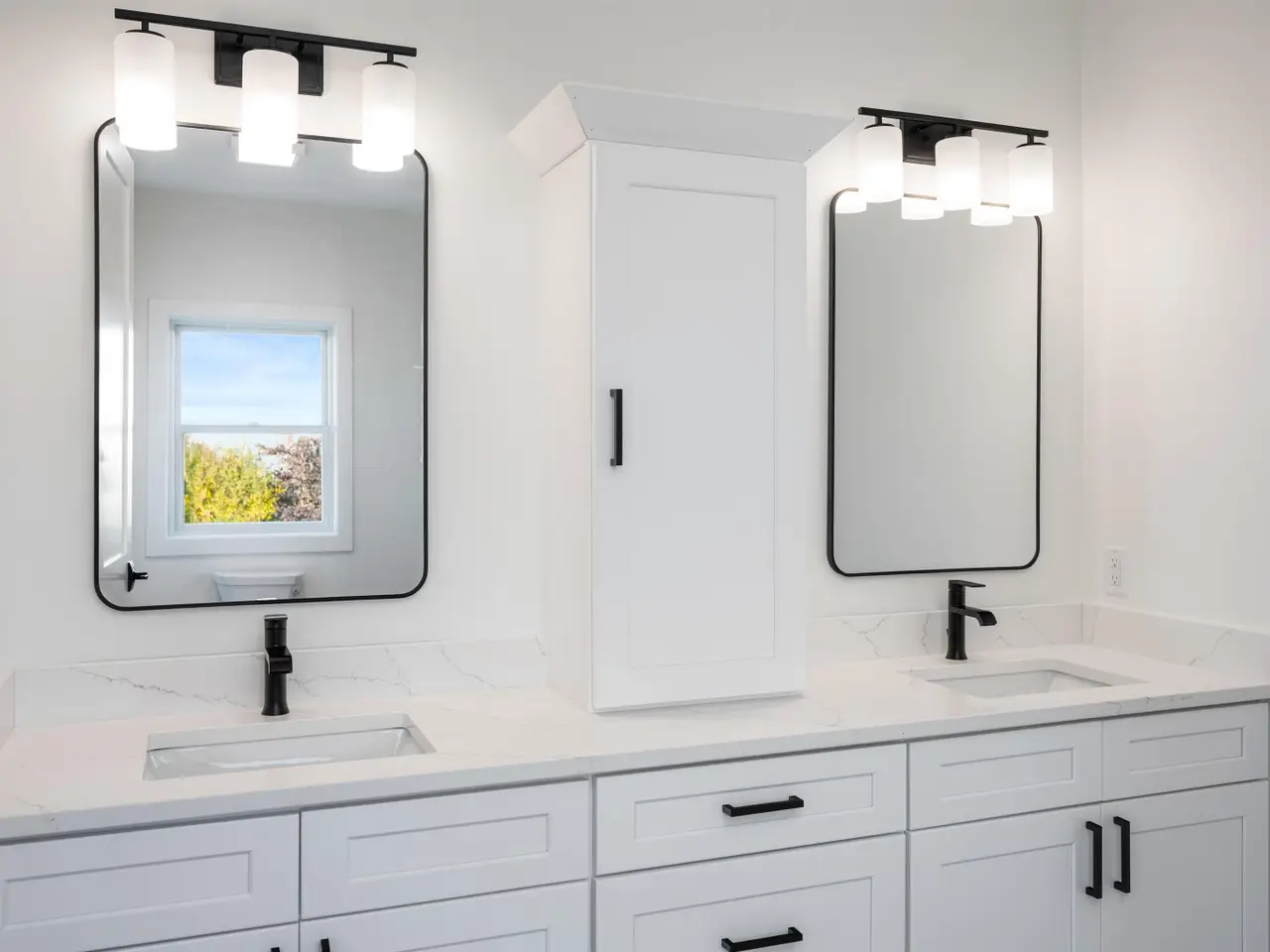 Modern West Traverse City Home with Quartz Counters & Shiplap Fireplace