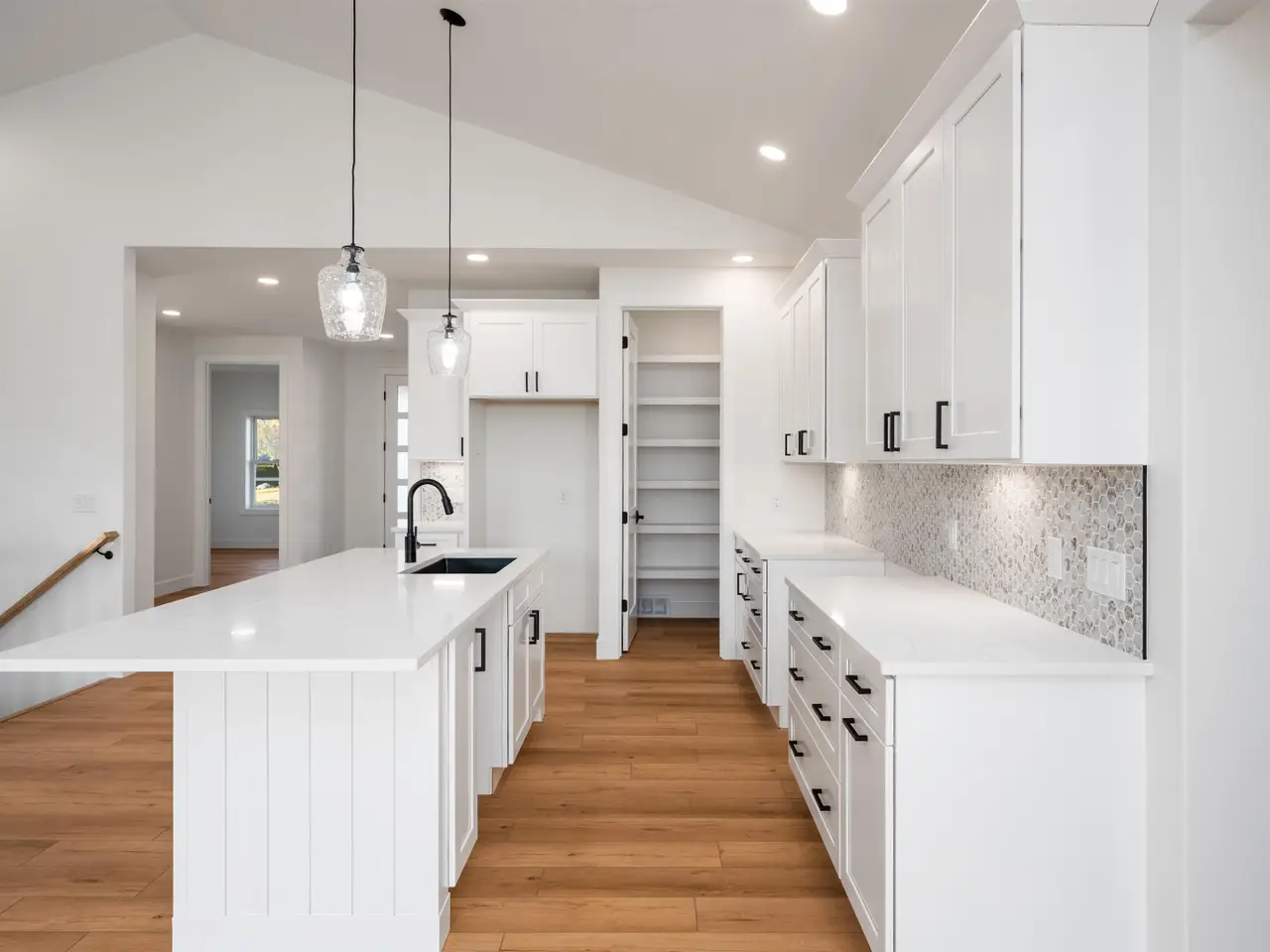Introducing a brand new modern luxury home on the vibrant west side of Traverse City! The builder just completed this stunning 5-bedroom, 3-bathroom home, complete with a finished 3-car garage. Meticulous attention has been paid to every detail, and the curb appeal is impressive. The home features quartz counters, luxury vinyl plank floors, a shiplap fireplace and island, built-in bookcases, 8-foot doors, LP Smartside trim and siding, central air, a covered concrete front porch, and a maintenance-free composite wood deck. The main floor includes a primary ensuite with tiled floors and a tiled floor-to-ceiling shower, as well as two additional bedrooms and bath. The finished walkout lower level showcases two additional bedrooms, a spacious family room, and a full bath. Municipal water and sewer. Residents can enjoy the walking trails within the Lone Tree community, which even connect to TC West High School. You'll love this close-to-everything location that's just a few miles from downtown!