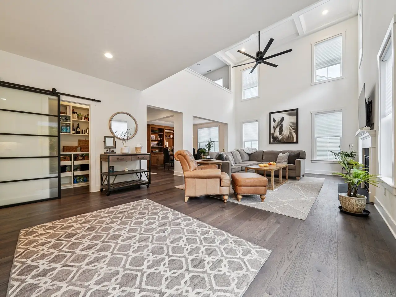 • Gas fireplace with vaulted coffered ceiling