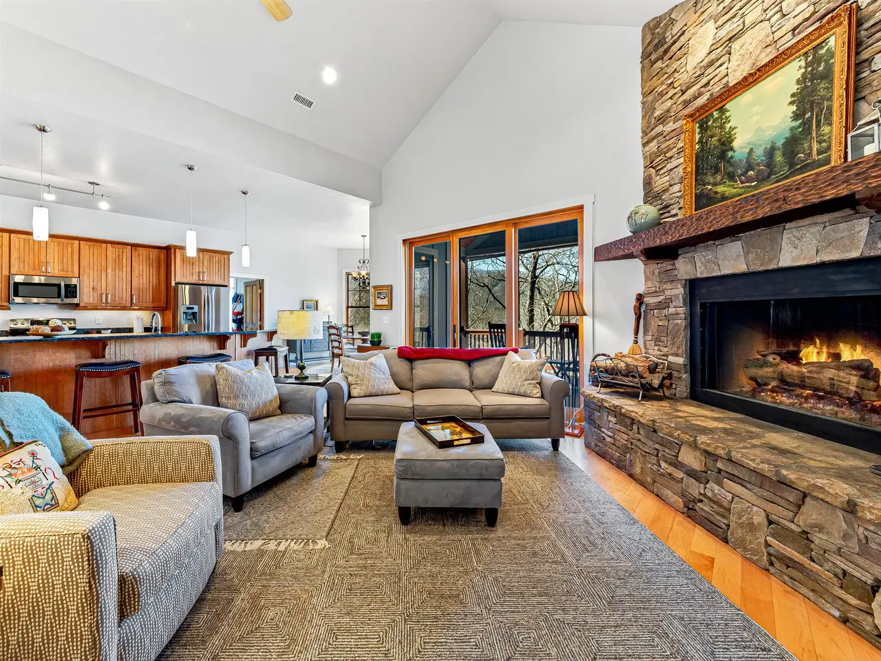 Escape to your ideal mountain retreat, where comfort, privacy, and nature come together in harmony. This stunning custom home is just a short distance from the Bear Lake Clubhouse and amenities. Designed for effortless mountain living, this spacious home features four generously sized en-suite bedrooms, perfect for hosting family and guests. Step inside to discover vaulted ceilings, an inviting open floor plan, and the warmth of both indoor and outdoor fireplaces. The main level seamlessly connects to a large covered deck that showcases breathtaking year-round mountain views, with views of the lake in winter. The lower level offers even more space to relax, featuring two additional en-suite bedrooms, a spacious recreation room, a screened porch, and abundant storage. An attached single-car garage adds convenience, making this home as practical as it is beautiful. With its exceptional layout and stunning setting, this home is a true mountain sanctuary. Schedule your showing today!