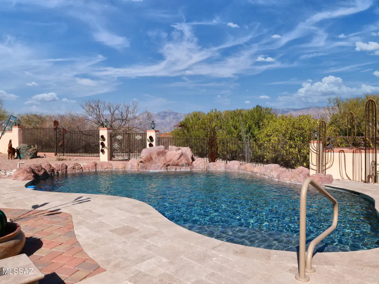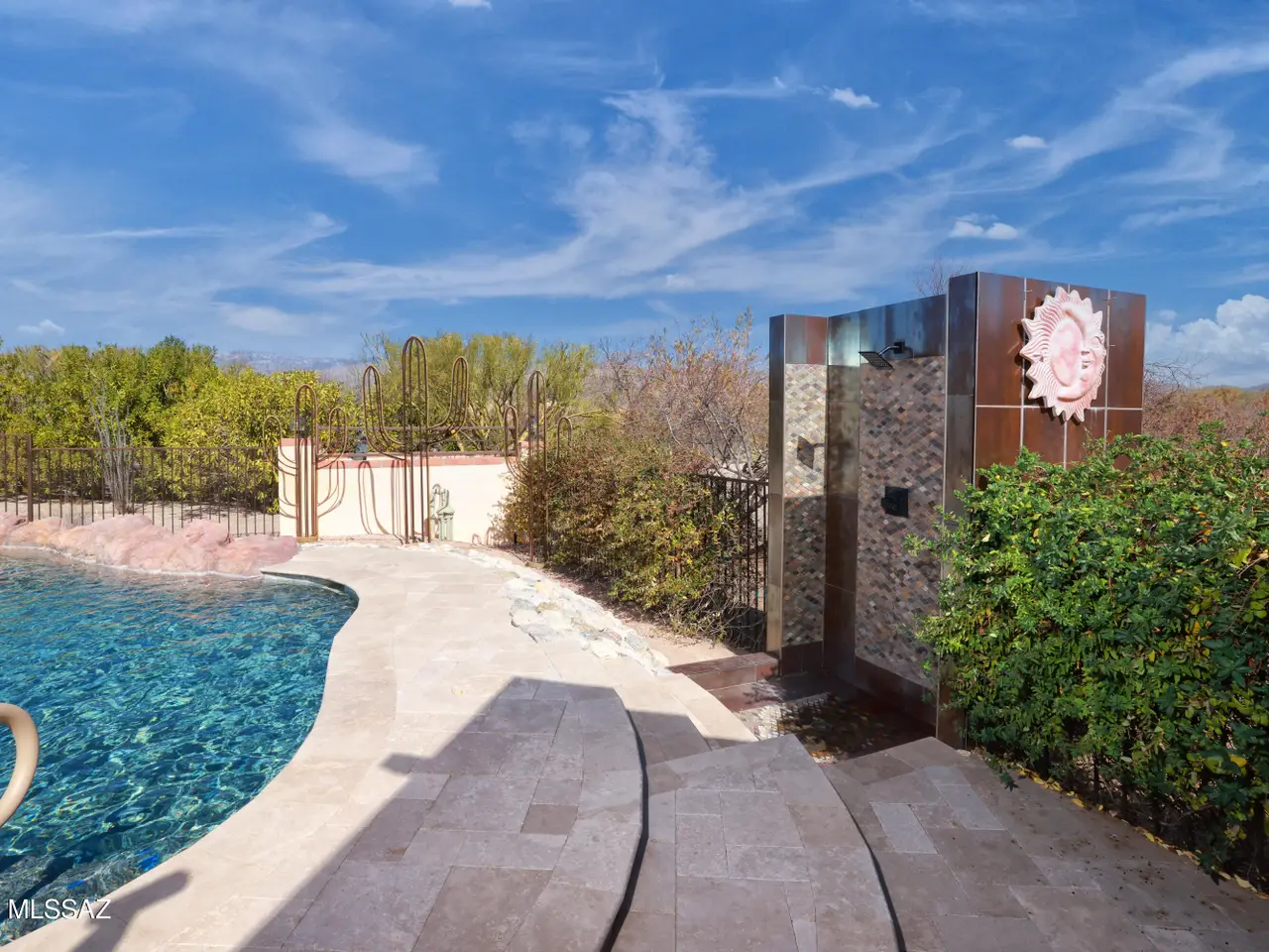 Beautiful, Southwest style home showcases quality craftsmanship & decorative finishes. Special starts with incredible views of the Catalina & Rincon Mtns on 3.3 acres. 2 Owners' Suite's each with private sitting room & full baths, plus 2 add'l bedrooms & baths. Kitchen has alder cabinets, custom hardware, double ovens, 2 stovetops & more. Spacious office with private entry. Oversized 3-car garage with laundry & large storage room. Backyard, an entertainer's dream with a sparkling pool, poolside ramada, outdoor shower, Blackstone grill, covered patios, pizza oven and garden shed. Beyond the enclosed yard, discover an Artist Studio, Chicken Coop & Workshop/4th Garage. Near Saguaro National Monument & Agua Caliente parks, golf, hiking & biking. Highly rated Tanque Verde Schools. Low HOA.