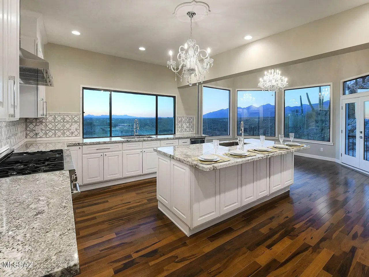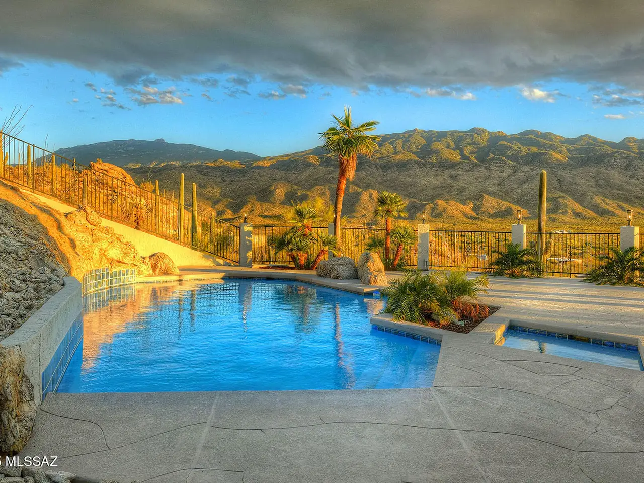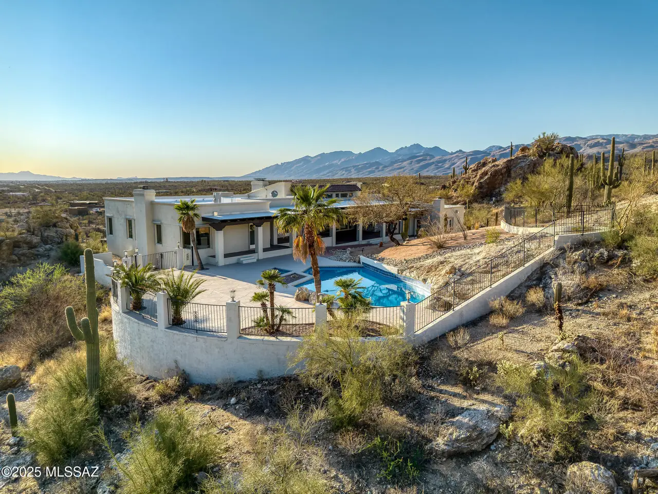 Panoramic views of mtn, city & Tanque Verde valley beckon through walls of windows adorning this luxurious home beautifully set on 7.22 hillside acres in the heart of La Cebadilla Estates. Gleaming pecan wood floors, etched marble FP, fabulous kitchen with 48-inch dual fuel range, double ovens, 2 DW, separate column refrigerator/freezer, oversized island w/bar seating, solid wood cabinets & casual dining w/jaw-dropping views. Full remodel also included luxe baths throughout; split plan offers romantic owner's suite w/FP, city lights & ''wow'' spa-like bath w/soaking tub & pool access; the lower level is great entertaining or kid hang-out space w/exercise rm, wet bar, potential media room. All new exterior decking in front & bath for 2053 covered outdoor living enjoyment.