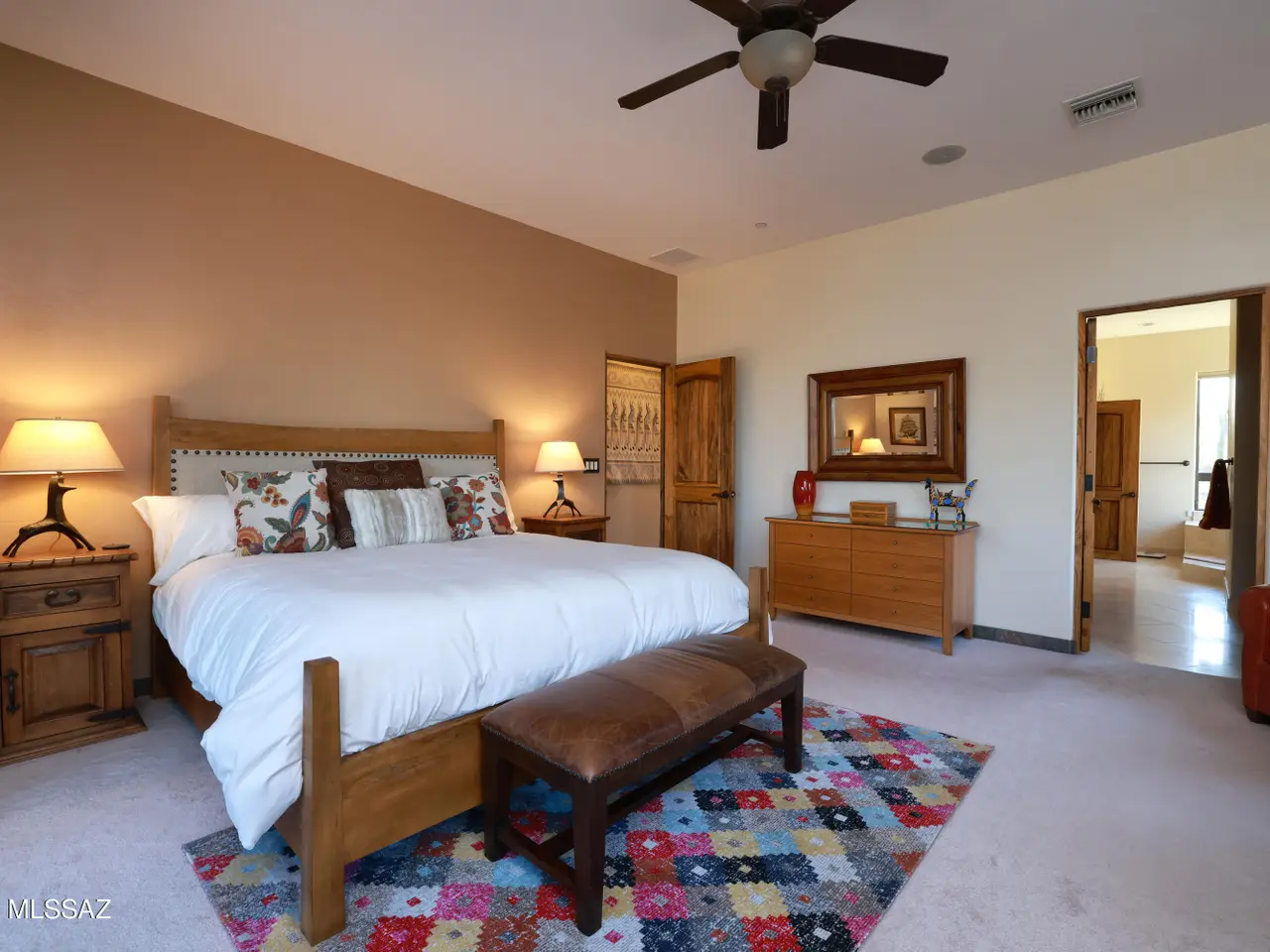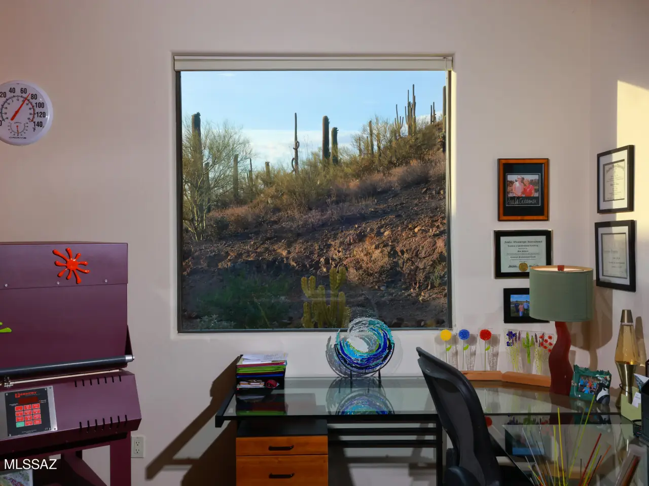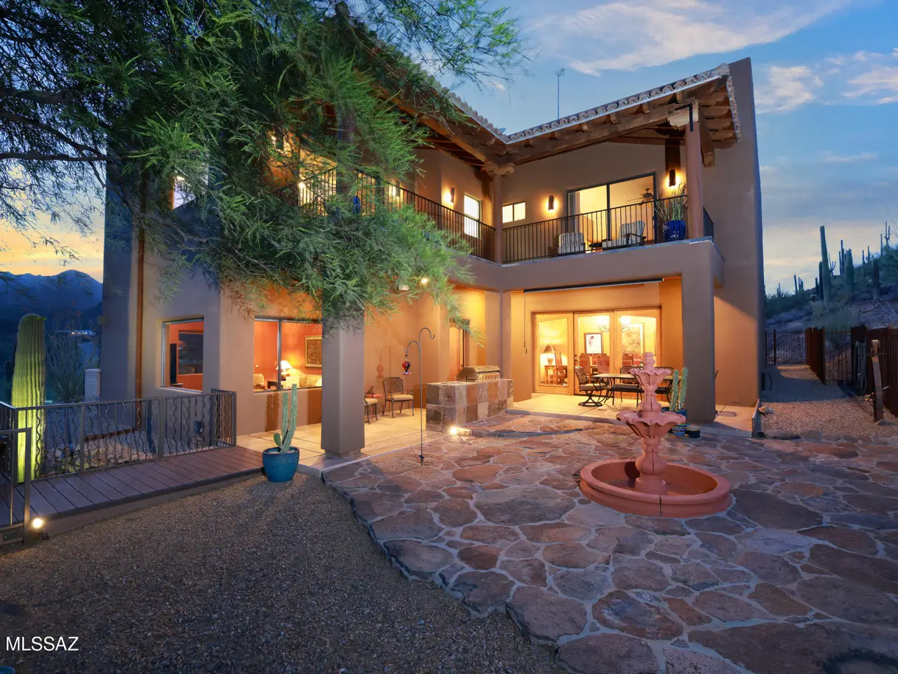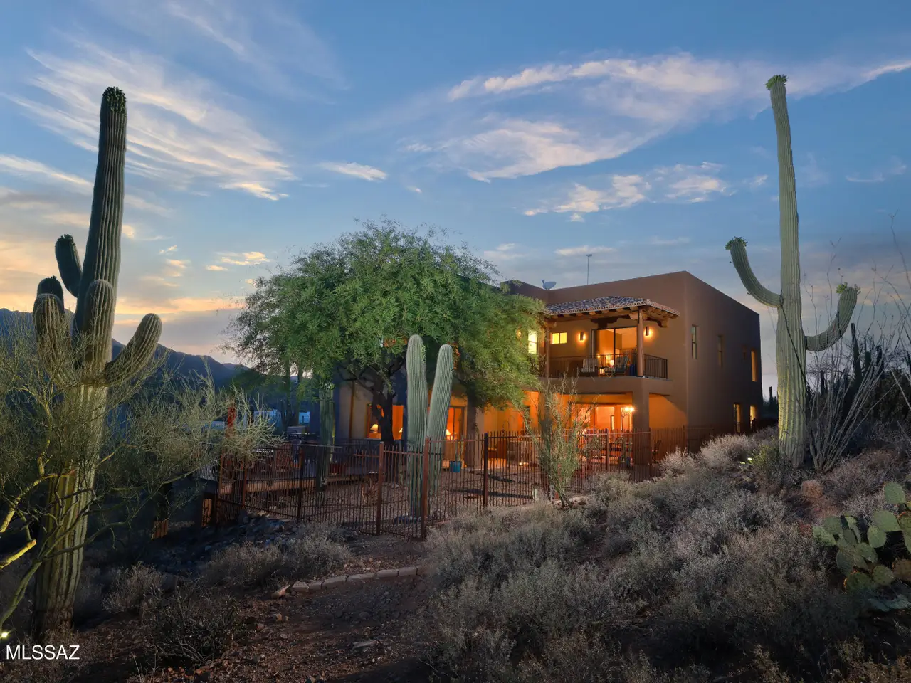 Perched on a tranquil hillside w/stunning panoramic views from every window, this one-of-a-kind custom home offers luxury, privacy & timeless craftsmanship. Built w/energy-efficient ICF construction & powered by owned solar, enjoy an avg elec bill of just $100/year! Interior highlights incl imported hand-crafted Alamo cabinetry & doors, elegant granite counters and a climate-controlled dbl-door wine cellar. The monster 1,500 SF 4-C Gar is thoughtfully designed so half can easily serve as a fully equipped workshop, home gym or creative studio. Entertain or unwind on the scenic deck, two patios or the upstairs balcony w/sweeping mountain and city light views. Many upgrades thruout. Gated commty, No HOA and only minutes to I-10 and downtown. Walking distance to Sweetwater Preserve Trails.