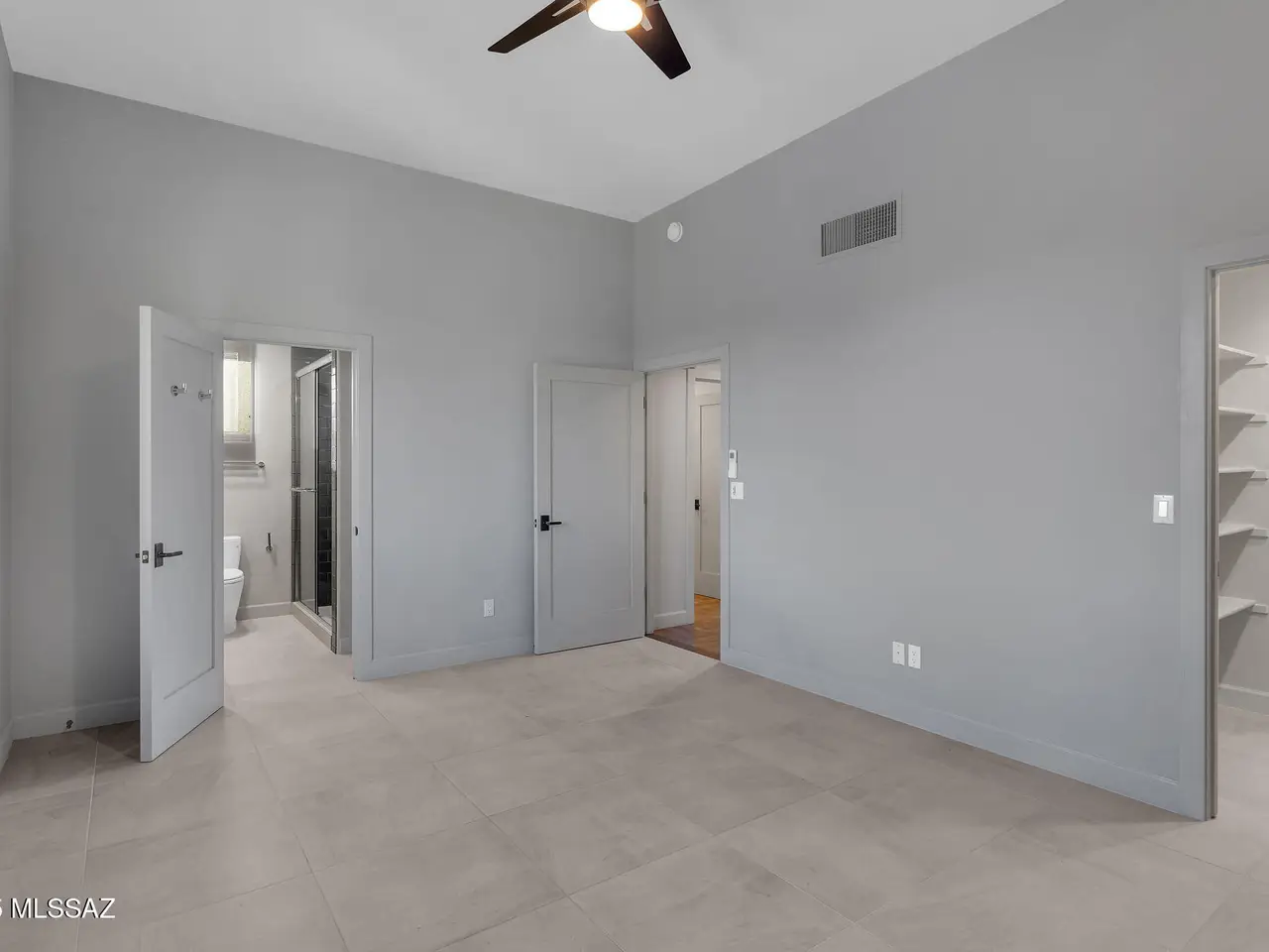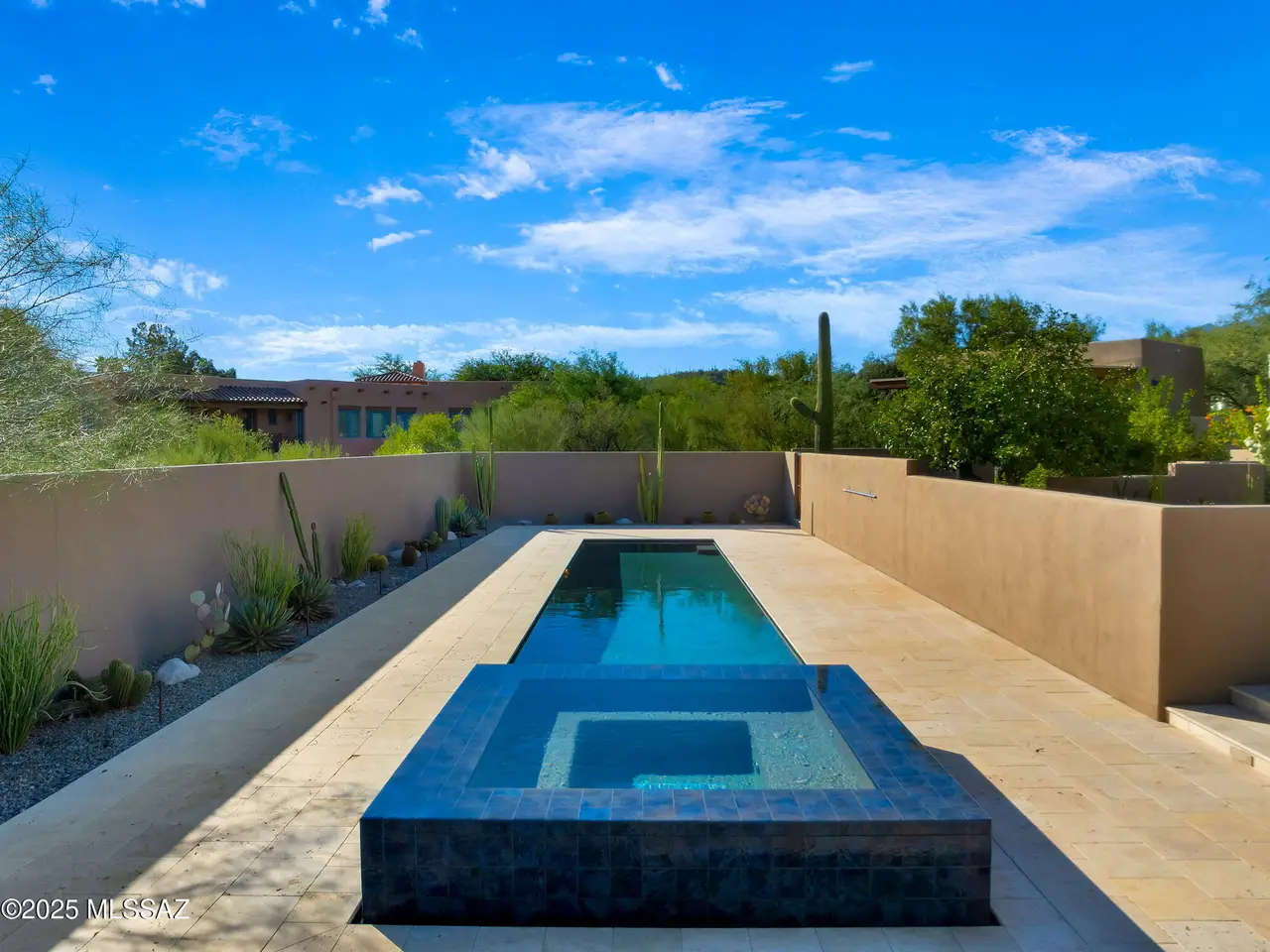 A superb blend of southwestern and contemporary architecture and design makes this an ideal retreat on the grounds of, the recipient of Michelin Guide honors, Canyon Ranch Health and Fitness Resort. The current improvements, additions, and remodeling done with delicate simplicity and quality construction adhering to minute details in its functionality. A comfortable open floor plan flows seamlessly from the living room through the kitchen and the dining area into the rest of this 4 bedrooms and 4 bathroom house. A wide streamlined 10 ft electric fireplace adds soothing warmth to the space. Fine quality of the custom-designed kitchen cabinets, granite tops and the high-end appliances is immediately apparent. Primary Suite includes a workout studio, floor to ceiling windows inviting in landscape and the Rincon Mountain views. Second and third bedrooms enjoy ensuite bathrooms and spacious walk-in closets. High-end porcelain tiles flooring, except for the fitness room, laid with special luxury vinyl plank flooring recommended for heavy workouts and waterproof surfaces provides comfort, safety and flexibility. Enjoy the views while entertaining friends on your multi-level travertine tiled patio descending towards a custom designed pool and spa. Desert plants and mature saguaro cacti breathe life into these immaculately landscaped grounds. The detached pool house/studio has full bathroom and a closet. Enjoy total immersion into Canyon Ranch healthy living philosophy and recharge and rejuvenate. Start your early morning walk on the iconic 2 mile loop followed by plethora of group fitness classes, meditation, yoga, pilates, aerobics and strength at the spa and gym facilities. Treat yourself to a massage, consult with expert practitioners, counselors and physicians in areas of nutrition, integrative and traditional medicine. Enjoy organized desert and mountain hikes and cycling. Build an appetite for healthy, delicious meals at one of the two dining venues. All at your fingertips.