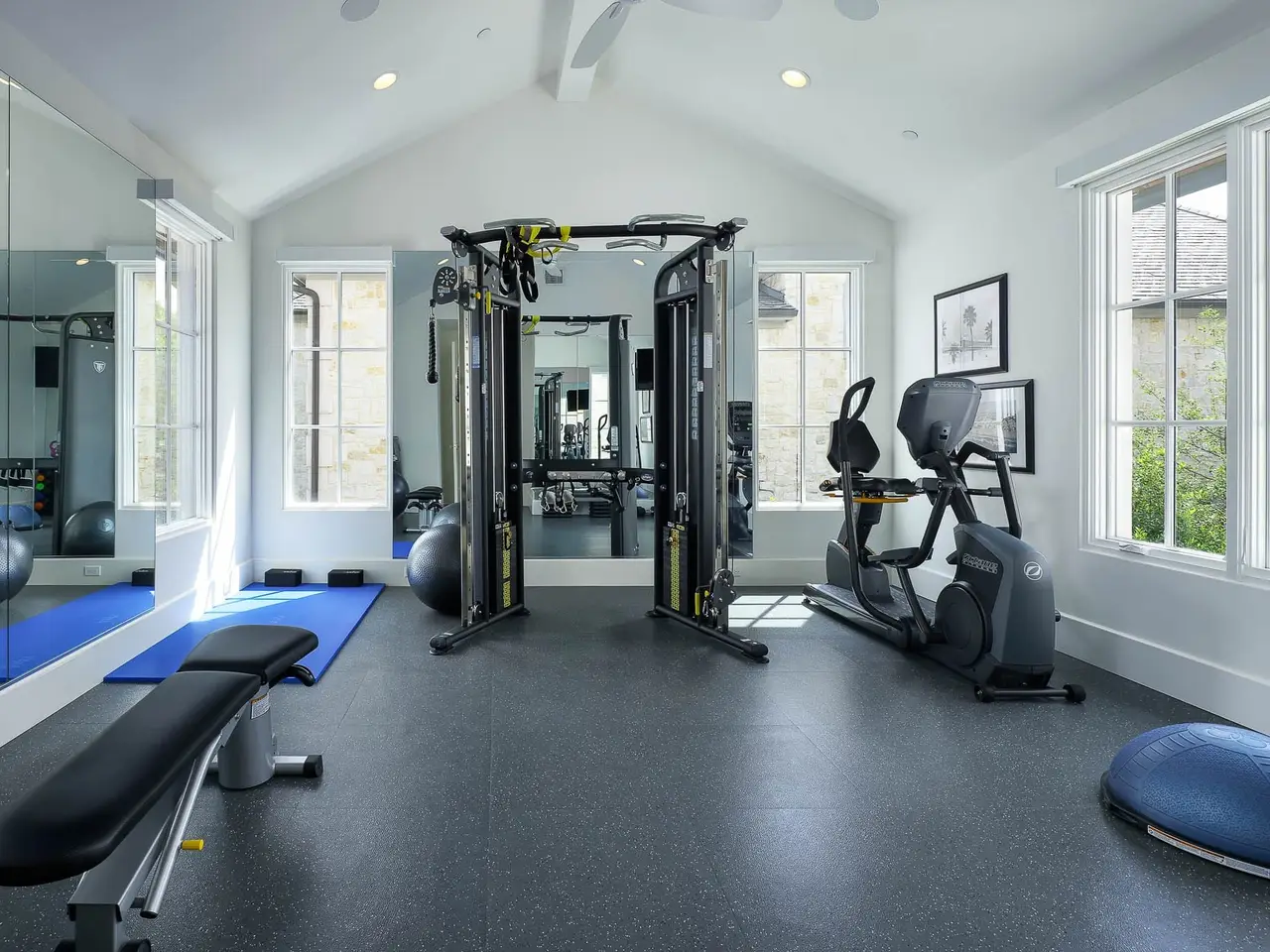 Downstairs primary suite with fireplace