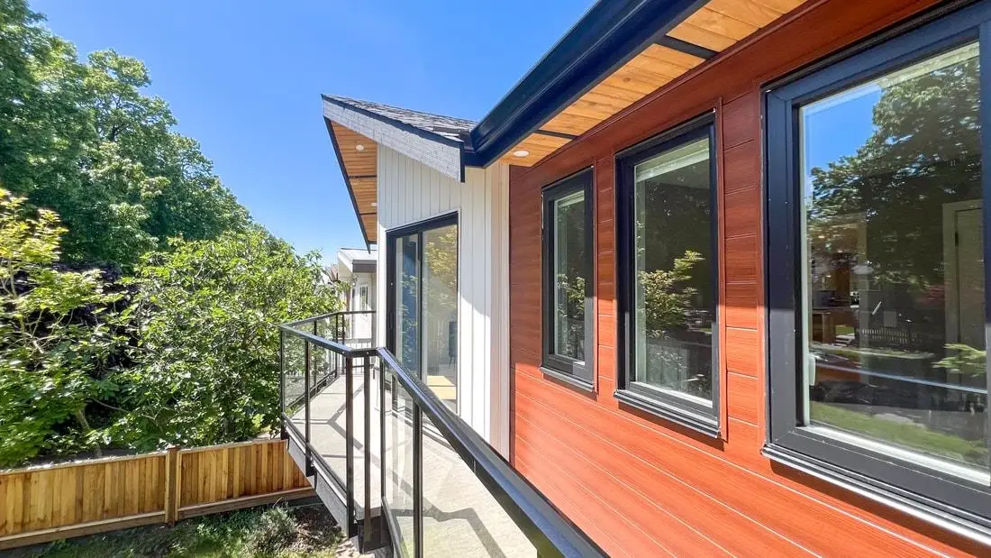 Modern, high-efficiency home on a quiet, tree-lined street in one of East Vancouver’s most sought-after neighborhoods! Ideally located near schools, shopping, and transit. Move-in ready with new windows, roof, insulation, dual-fuel heat pump, on-demand hot water, 200-amp electrical service, EV charger, and spacious two-car garage plus extra parking. Enjoy a well-designed two-level layout featuring a mortgage helper suite with separate entrance. Premium finishes include engineered hardwood floors, heated ensuite bath floors, higher-end kitchen appliances like Bosch/Miele/LG, sleek linear electric fireplaces, and imported Italian tile. Relax on your private deck with gas BBQ hookup. No GST applies.