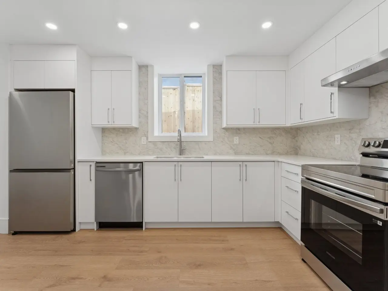 Asanti Homes presents this one-of-a-kind front and back duplex on a 55 x144-foot lot in desirable South Cambie. This 2,371 square foot three bedroom/2.5 bath home plus one bedroom/one bath legal suite provides unparalleled duplex living for any size of family. The main level features a beautifully appointed entertainer’s kitchen, and a large bright living/dining room. The upper level has three bedrooms including a large primary bedroom, ensuite and walk-in closet. The main level living room leads out onto the generous covered deck. Jamieson Elementary/Sir Winston Churchill Secondary.