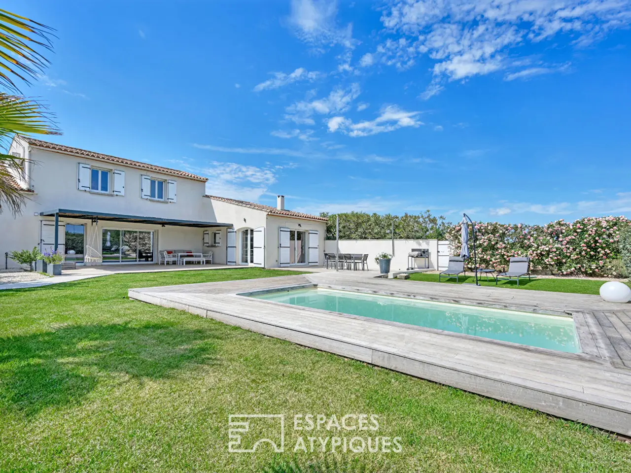 30 km from Nimes and 20 km from Aigues-Mortes, in a sought-after and privileged area, between vineyards and ponds, discover this perfectly maintained residence of more than 300m2.It offers warm, spacious and bright living spaces with cathedral ceilings and fireplaces and beautiful terraces where you can take meals while enjoying the view of the gardens and nature. Two master suites on the ground floor and, upstairs, two office spaces, 4 bedrooms, a bathroom and a shower room. The land of more than 6000m2 reveals 60m2 of outbuildings including a 25m2 workshop, a caravan, two swimming pools including one salt, a petanque court, a vegetable garden and a riding arena ready to accommodate horses. In a village for nature lovers, close to a nature reserve but not isolated with the possibility of rental income, the creation of a guest room / gites or even the ease of separating the two houses to have two independent spaces. Transport in the immediate vicinity, TGV station, Montpellier / Nimes airports and beaches 30 minutes away, motorway access 15 minutes away. ENERGYCLASS: B / CLIMATE CLASS: A - Estimated average amount of annual energy expenditure for standard use, established from 2021 energy prices: between EUR4,028 and EUR5,450 subscription included.Contact, Alexandra 06 18 07 74 02REF. 6609-8040Additional information* 10 rooms* 6 bedrooms* 2 bathrooms* 2 shower rooms* 1 floor in the building* Outdoor space : 6050 SQM* Parking : 10 parking spaces* Property tax : 3 700 €Energy Performance CertificatePrimary energy consumptionc : 150 kWh/m2.yearHigh performance housing*A*B*150kWh/m2.year28*kg CO2/m2.yearC*D*E*F*GExtremely poor housing performance* Of which greenhouse gas emissionsc : 28 kg CO2/m2.yearLow CO2 emissions*A*B*28kg CO2/m2.yearC*D*E*F*GVery high CO2 emissionsEstimated average amount of annual energy expenditure for standard use, established from energy prices for the year 2021 : between 4028 € and 5450 €Agency feesThe fees include VAT and are payable by the vendorMediatorMediation Franchise-Consommateurswww.mediation-franchise.com29 Boulevard de Courcelles 75008 ParisInformation on the risks to which this property is exposed is available on the Geohazards website : www.georisques.gouv.fr