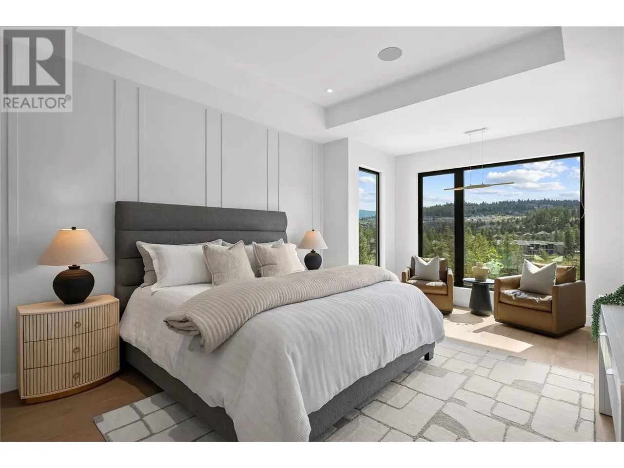 Nestled in the heart of the Okanagan, Predator Ridge Properties offers an unparalleled blend of luxury homes, breathtaking views, and resort-style amenities—perfect for those seeking an elevated lifestyle in a vibrant, master-planned community. In the prestigious Wildsong enclave this just-completed Serenity Peak build, by award-winning Carrington Homes, is a masterpiece. The 5-bed, 4-bath walkout rancher spans over 3,700 sq.ft., featuring soaring ceilings, accordion and pass-through windows, and high-end finishes. The open-concept layout highlights a designer kitchen with a massive island, floor-to-ceiling cabinets, and a walk-through pantry. The luxurious primary suite offers sweeping views, an ensuite with heated floors, and a spacious walk-in closet roughed-in for laundry. Two additional laundry areas provide added flexibility. Enjoy outdoor living with a covered deck, walkout patio with built-in speakers, low-maintenance yard, and in-ground saltwater pool with an automatic cover. A 3-car garage completes this exceptional property, located minutes from Sparkling Hill, Predator Ridge Golf Course, Silver Star, downtown Vernon, local beaches, and parks. Community residents enjoy access to championship golf, a state-of-the-art fitness centre, pool, racquet courts, hiking and biking trails, dining, a local market, community events, and a wellness-focused lifestyle. Live the luxury Okanagan lifestyle with Predator Ridge Properties. GST applicable. (id:7434)