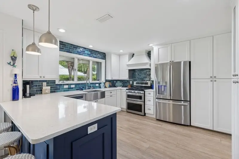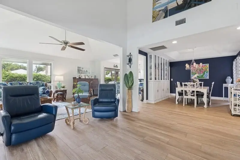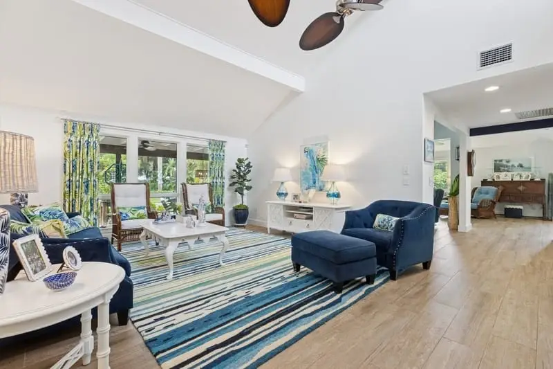 Thoughtfully designed 4BR/3BA coastal retreat where no detail is overlooked. Elegant white kitchen, custom cabinetry, and wood plank tile throughout. Resurfaced saltwater pool, gas fireplace, and range, plus exterior gas line for grilling. Spacious fenced yard with new 30-year metal roof (completion mid-Nov). Walk or cart to deeded beach access with private parking, lanais, showers, grill & tortoise habitat. Near Moorings Yacht & CC with rare Social Club Membership opportunity.