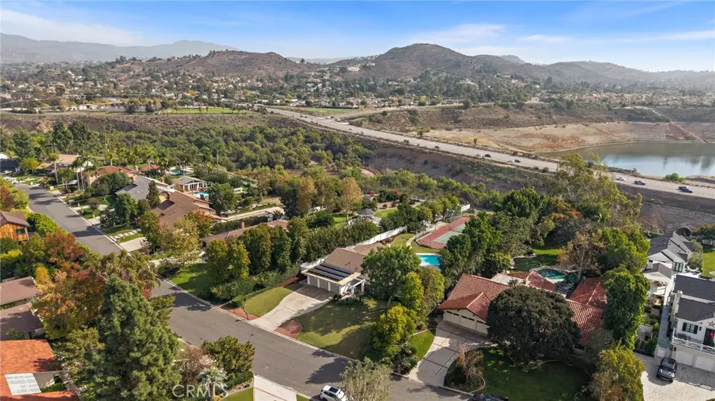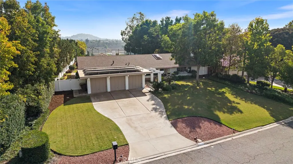 Welcome to your private sanctuary in one of Villa Park's most coveted enclaves. Nestled along prestigious Patrician Drive, known as the "Riviera" of Villa Park, this remarkable single-story mid-century modern estate offers the perfect blend of timeless design, California serenity, and endless possibilities for entertaining. Set on an elevated near three-quarter acre, this single story property boasts lush green lawns, vibrant landscaping, and undeniable curb appeal. Inside, nearly 3,000 square feet of living space unfolds with natural light and true single story flow. Vaulted ceilings soar above the living, family, and spacious primary room, creating a sense of airy expanse and openness. Floor to ceiling brick hearth fireplaces add warmth and appeal to both the living room and family room. Expansive views from the dining room, recently remodeled kitchen, primary suite and family rooms reflect comfort and contemporary elegance. Three additional bedrooms and 2 bathrooms can accommodate family, guests, a home office, Pilates studio; virtually anything desired. Step outside and feel the magic of true California luxury living --beautifully landscaped expansive grounds, covered patio, sparkling pool glistening under the sun, regulation-size tennis court complete with lights ready for tennis matches or conversion into pickleball courts, a basketball court, or many other endless possibilities. The outdoor living space includes several open entertaining spaces designed for hosting unforgettable gatherings with friends and neighbors. From sunrise swims to twilight get-togethers beneath the stars, every moment here feels like a dreamy escape. With serene views of the mountains, city lights, and the Santiago Creek Basin and trails, this home captures Villa Park's natural beauty and prestige at every turn. A three-car garage with epoxy flooring, RV parking, and solar energy add convenience and efficiency to its long list of luxuries. Whether you're seeking a peaceful retreat, an entertainer's dream, or a canvas to create your own masterpiece, 18746 Patrician Drive is where your next chapter begins -- a place where elegance, comfort, and possibility meet.