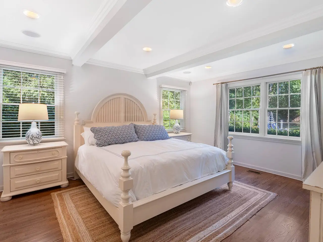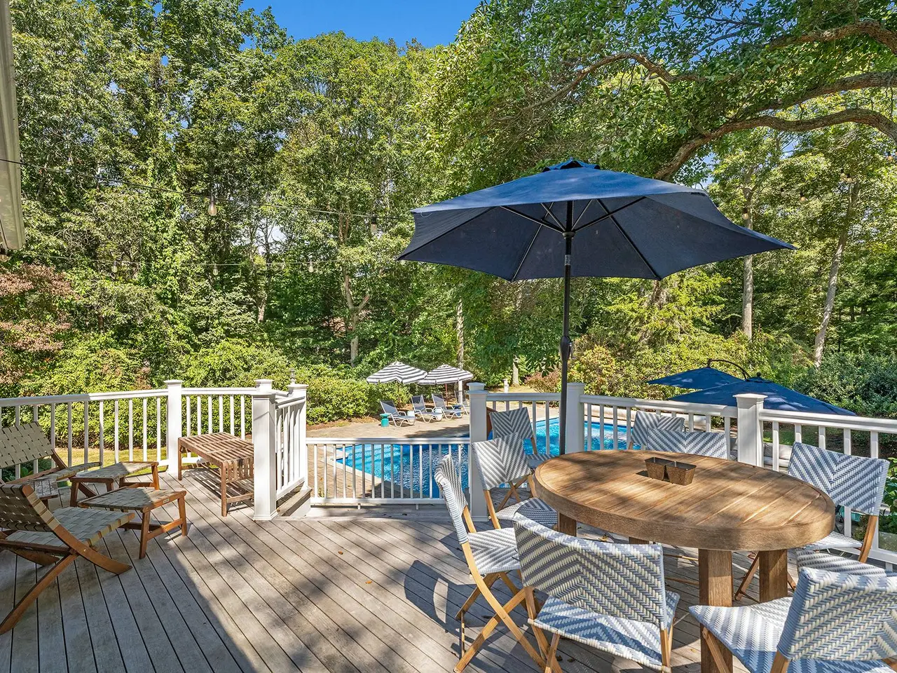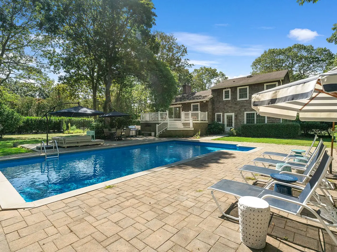 This recently renovated 4 bedroom, 3.5 bath Quogue Village home is filled with light and offers a stunning backyard with an expansive lawn, mature landscaping, heated pool and stone patio. Enter through the welcoming foyer and a primary suite with spa bath and powder room, awaits on the first floor. The main level includes a cozy living room with fireplace, dining area, and well-equipped kitchen. Off the dining room is the outdoor deck for dining and entertaining. The upper level boasts a second primary en suite, two guest bedrooms and a hall bath. A lower level family room provides another entertaining space. The layout lends itself to multiple areas for gathering. Located in the Village with access to the residents-only Quogue Beach. Available for Winter 2025/2026 and Summer 2026. Listing ID: 925747