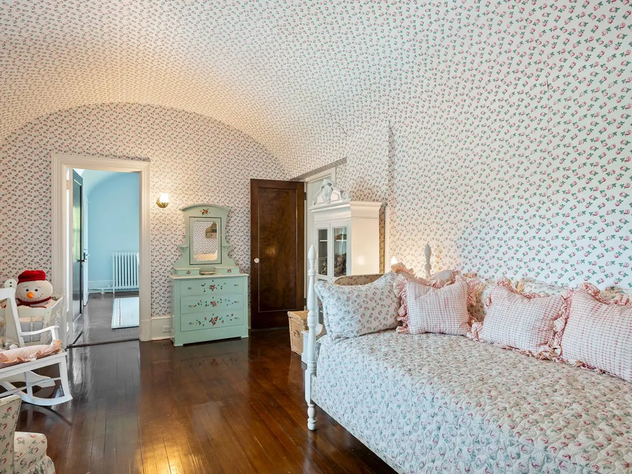 This majestic home originally built in 1881 stands as one of the earliest and most distinguished summer 'cottages' in Quogue. Designed by renowned architect Isaac Green, whose opulent mansions graced Long Island's South Shore during the Gilded Age, this grand residence which was named 'Bella Mar' is rich in both architectural pedigree and cultural history. Among its notable former owners is Tony Award winning director and playwright Arthur Laurents (West Side Story), who, in the 1950's divided the original structure into two residences, the second now next door at 109 Quogue Street. Set on approximately 1.6 acres of impeccably landscaped grounds, this 5600+/- square foot three-story home is surrounded by mature plantings and tall privet hedges, offering unmatched privacy. A well-situated gunite pool further enhances the serene estate-like setting. A winding stone drive leads to the expansive front porch and impressive foyer, where 10-foot ceilings set the tone for the interior's scale and elegance. The sun-filled living room and formal dining room, both with fireplaces, create ideal spaces for entertaining. A separate library offers a quiet retreat, while the bright kitchen opens into a charming sun porch overlooking the peaceful gardens, a tranquil spot to enjoy morning coffee. Central air conditioning serves the main floor, while ductless units provide comfort on the upper levels. A striking staircase, framed by 8-foot stained glass windows with diamond motifs, ascends to the second floor, which features a central landing with fireplace and three generous bedrooms, two of which are en-suite with fireplaces and walk-in closets. The third floor continues the theme of character and charm with with tall barrel ceilings, a cozy landing with built-in bench seating, three additional bedrooms, and two baths. Below, the full basement reveals the home's original stone foundation, a testament to its enduring craftsmanship. This is a rare opportunity to own a timeless estate available once in a generation. Listing ID#923383