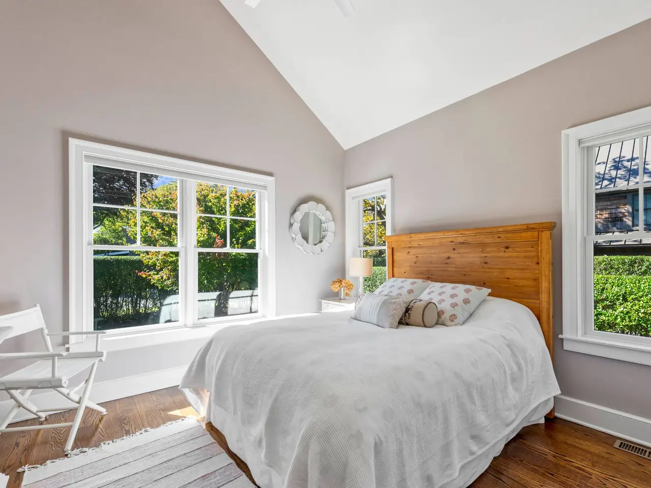 Nestled in the heart of Sag Harbor's Historic Whaling Village, this 3 bedroom 3 and 1 half bath house seamlessly blends charm and elegance. Bathed in natural light, the property boasts a modern kitchen perfect for gatherings, and a cozy living room featuring a wood-burning fireplace and cathedral ceiling. The first floor offers two bedrooms, including an en-suite, a shared hall bath, and a versatile den space with pocket doors. Ascending to the second floor, you'll discover a loft-like primary bedroom complete with a generous walk-in closet and bathroom, showcasing a double vanity and tasteful design. Step outside onto the expansive deck, ideal for entertaining, which overlooks the heated gunite pool and a serene wildlife reserve. Set on a .42-acre lot, this home provides a sense of seclusion and tranquility while being mere moments from the vibrant heart of Sag Harbor Village.