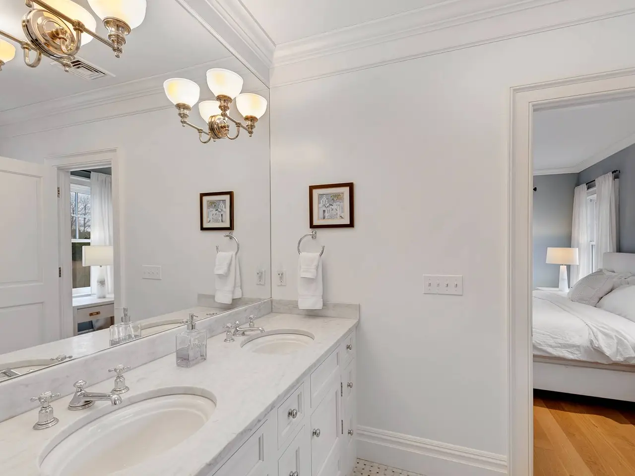 This 6,200 SF, immaculate traditional has it all and is near it all! South of the highway and minutes to word class beaches. Grandiose foyer, gourmet kitchen, grand living room and spacious dining room. The 1st floor master suite is complete with large closets, en-suite bathroom and gas fireplace and sliders to the backyard. Upstairs are four large en-suite bedrooms, two of which lead to the charming balcony. Head to the lower level to find a gym, media room, and full music studio. The gorgeous grounds are complete with a large heated gunite pool and pool house. Don't miss the opportunity to spend a summer in this magnificent house!