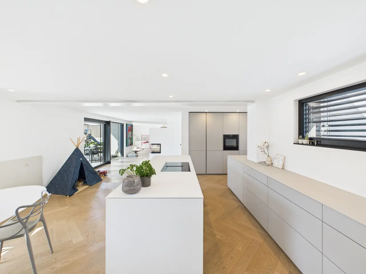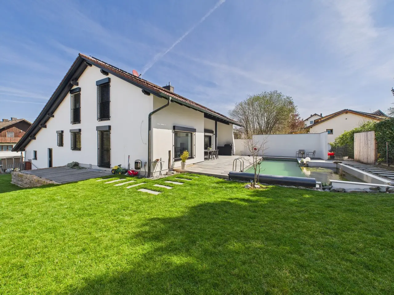 A place that provides a sense of security, radiates clarity and offers space for new stories: This high-quality renovated detached house in Vilsheim / Langenvils combines rural idyll with modern living culture. Nestled in the tranquil natural surroundings of the Vils valley, yet close to the city, this home has a very special aura - harmonious, stylish and authentic. The property was extensively and sensitively renovated in 2021/22. The approx. 209 m² living space comprises six spacious rooms that impress with their open floor plans, natural lighting and clear design language. Fine materials and harmonious color schemes create a warm, inviting atmosphere. The custom-made kitchen by a carpenter with modern appliances and high-quality surfaces is not only a functional focal point, but also a meeting place. Floor-to-ceiling windows seamlessly connect the interior with the exterior - here, life opens up to the garden, to nature, to light. The plot of around 839 m² has been lovingly landscaped: A spacious terrace with fine natural stone, a near-natural swimming pond with wooden deck, outdoor shower and an automatic irrigation system make the outdoor area an oasis of relaxation. The house is also technically impressive with a modern, energy-efficient concept - including photovoltaics, solar support and intelligent control. High-quality windows, smart shading and harmonious fixtures underline the high standards. A well thought-out floor plan, a stylish bathroom with laundry chute, custom-made wardrobes, exposed screed and many other lovely details round off the overall picture. Three outdoor parking spaces and a garage offer ample space for vehicles. The quiet location on the outskirts promises privacy! This house is more than just four walls. It is a way of life. A home that radiates warmth, gives freedom and leaves room for the essentials.