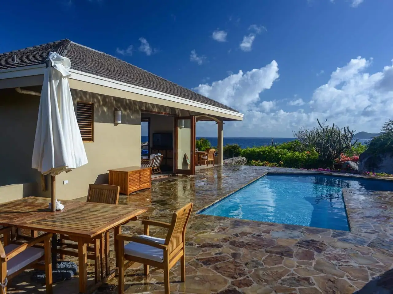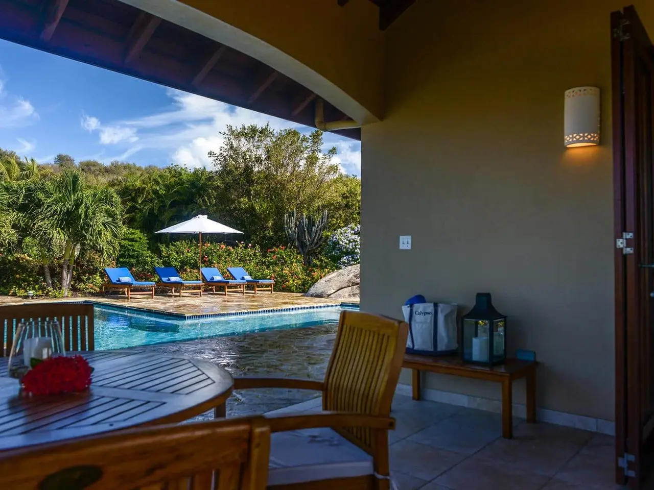 <iframe src="https://my.matterport.com/show/?m=CYJ1ds1XgV6" width="853" height="480" frameborder="0" allowfullscreen="allowfullscreen"></iframe><br /> <br /> <iframe src="https://my.matterport.com/show/?m=hQyUWGdqvtw" width="853" height="480" frameborder="0" allowfullscreen="allowfullscreen"></iframe><br /> <br /> ‘Calypso Villa’ is one of Virgin Gorda’s finest luxury villas; fully renovated in 2018. Quietly nestled among magnificent boulders and beautiful vegetation, the property is very private and welcoming. Built on a large land lot, the property is very private and peaceful.<br /> <br /> The house was designed and situated on the property to take advantage of prevailing trade winds and to maximize the panoramic views of the Caribbean Sea. Calypso’s thoughtful design provides numerous shaded porches where guests can escape the mid-day heat as well as a sun drenched pool deck that is the ideal spot for fun in the sun.<br /> <br /> Calypso’s living spaces feature walls of folding glass doors that allow for the very best in Caribbean indoor-outdoor living. Calypso’s outdoor spaces feature high quality teak furniture with plenty of seating options. As you soak up the sun or relax in the shade you will be surrounded by the villa’s mature tropical gardens filled with flowers, cacti, and fruit trees. A few hours spent chilling in Calypso’s pool is the perfect way to take in all this incredible property has to offer.<br /> <br /> Calypso Villa has a fully equipped chef’s kitchen with granite countertops and stainless steel appliances. You can also enjoy gas and charcoal BBQ grills on the pool deck. This house is particularly well equipped and as a result makes for a truly comfortable vacation experience.<br /> <br /> Calypso Villa is a 3-bedroom, 3½ bathroom house featuring large interiors and expansive outdoor decks and patios.<br /> Each bedroom has it’s own private bathroom and outdoor spaces feature high quality teak furniture with plenty of seating options.<br /> <br /> This house is great for sharing because each bedroom is like a master suite. Two of the bedrooms feature king-sized mattresses and two of the bathrooms have additional outdoor showers. The third bedroom has two queen-sized beds. This configuration offers lots of flexibility for families with children. All of the bedrooms are equipped with air conditioning and have flat panel televisions.<br /> <br /> Calypso Villa is a fenced and gated property located in the exclusive residential neighborhood of Crooks Bay near the Baths in Virgin Gorda. The house is a short walk to the beach at Crook’s Bay. This villa is ideally located within a 5 minutes drive from a dozen restaurants, the Virgin Gorda Yacht Harbor, all of the island’s grocery stores, and a ½ dozen world-class beaches including The Baths, Spring Bay, and Little Trunk Bay. The location is ideal for enjoying the very best of Virgin Gorda. We know you will love it at Calypso Villa!!