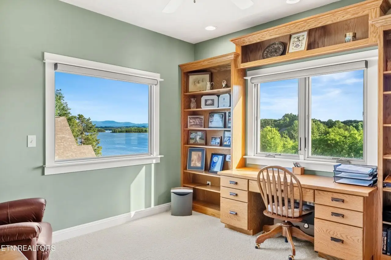 Golf Front Luxury with a Beautiful View of Tellico Lake and the Smoky Mountains. Impeccably maintained and Move-In PERFECT. Lush luxury landscaping. Custom-Built. Wall-of-Windows. 12' Ceilings. Refrigerated Wine Room. Located in the Gated Rarity Bay Lake and Golf community with a deeded highest level Premier Golf Membership. The sunroom is the highlight...Light - Bright - Open - Cool - Comfortable, an all around Awesome room to enjoy the Good Life. The cook has a wonderful view. Custom cabinets. Gas cook top. GE Profile stove. A wonderful coffee bar area. Wine and Beverage Refrigerator. Open concept. Mostly Pella Windows and Doors. Stone natural gas fireplace. Bedroom #2 & Office are upstairs. The Oversized 2 Car Garage easily fits a golf cart too. Huge unfinished storage room. Workshop is finished with HVAC. 2 Trex Composite Decks (2023, 50-year warranty). 3 furnace\A/C units (2019, 2020, 2023). 2 Water Heaters (2020, 2025). Stucco renovated in 2022. Bay View Boat Docks - Slip #C27 lease can convey. 2021 Bennington SSRX 22 ft Pontoon and Hydrohoist lift are negotiable separately.