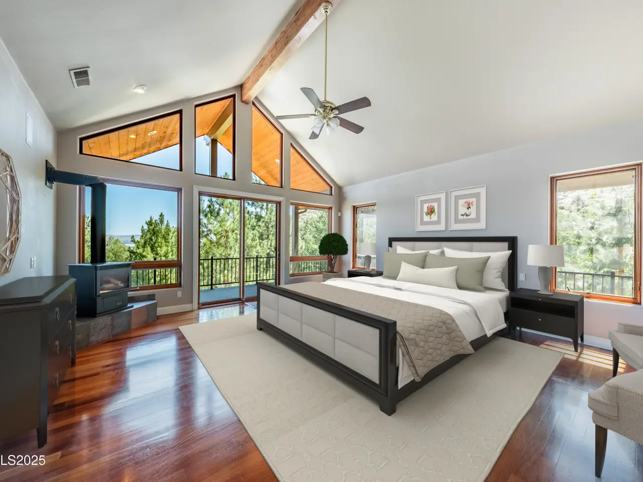 This beautifully situated custom home with views from every room is tucked into the mountain overlooking the majestic Washoe Valley and lake. The eastern property border is a stand of old growth Aspens and a small creek. Easy access to shopping in Carson City and just minutes from Toiyabe Golf Club. A second 5 acre parcel to the north can be sold with home for a total of 10 acres. Knotty Alder cabinets with Brazilian cherry hardwood flooring mixed with travertine and slate set the theme of mountain modern. The kitchen is an entertainers dream with 2 islands, beautiful Knotty Alder cabinets allowing for tons of storage, 3 dishwashers, 2 disposals, a Subzero refrigerator, full freezer, and six burner range with pot filler. The lower level has an in-law quarters with kitchen. The stunning home features a gas fireplaces, back up generator, elevator, central vacuum, 2-75 gallon water heaters, 3 furnaces with electronic air cleaners, and 2 air conditioners upstairs. The laundry room is also a wonderful sewing and craft room. 2 car garage attached to house and a second detached heated garage features a living space with bath, workshop, a pass through RV garage and room for 5 to 6 more cars.