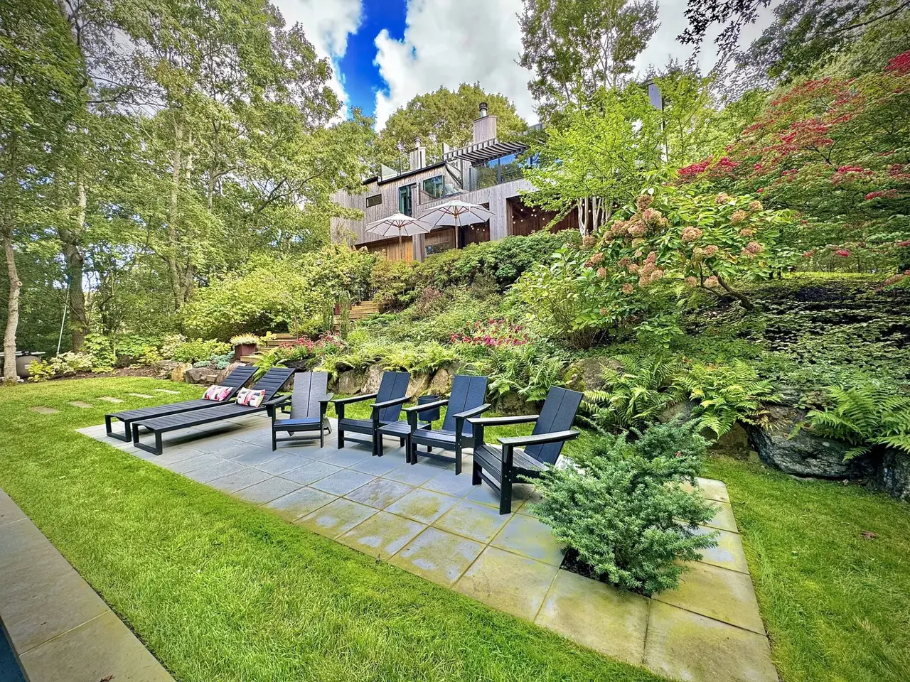 Just move into this immaculate modern 3 level house with a total of 3+ bedrooms, consisting in 3 full bedrooms plus loft located on the third floor, the loft is multi-purpose with a newly renovated en-suite full bath and a private balcony also with glass railings and stunning pool views; 3.5 bathrooms; the house has been just substantially improved expanding the outdoor living space, adding a new outdoor cold/hot water shower. Features include a first floor living and dining room with fireplace, furnished covered deck with grill, top of the line kitchen and powder room. Second floor features a great family/tv room with a furnished just expanded deck with electrical new awning, 3 bedrooms and 2 full baths are located on the second floor as well. Additional features include a new heated saltwater pool, central air conditioning, spacious laundry/pantry room. Very private setting. This is a must see! Available July and August 2026. Listing ID: 916471