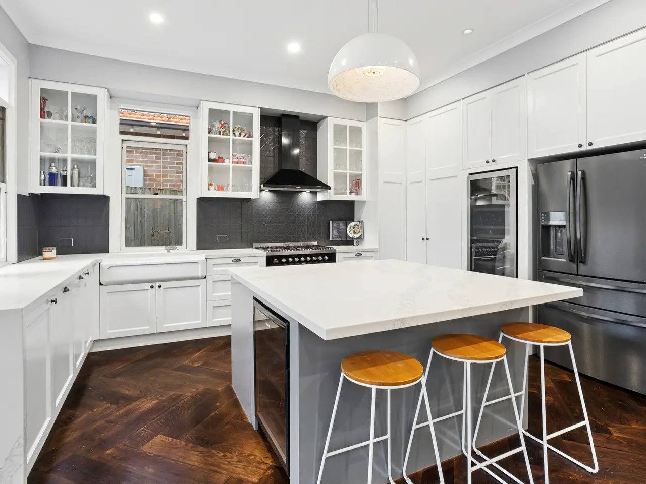 A remarkably rare offering in one of Waverton's premium streets, this magnificent home presents a brilliant sanctuary for contemporary family relaxation with a rear north-west facing outdoor entertaining area. The front half of the home demonstrates sophistication with impeccable period charm and a generous array of four bedrooms, two of which offer complete versatility to suit a range of family needs. The rear extension has been thoughtfully and meticulously renovated into a stunning open-plan setting, encompassing an alluring gourmet kitchen and a spacious living area which flows seamlessly out to the idyllic rear garden, spa and lounging/entertaining deck. Positioned in one of Waverton's most prized streets, it offers complete leafy serenity while only moments away from Waverton Village and Station, North Sydney Metro and CBD. - Entirely level full-brick house on an expansive rear north-west facing block - Stylish timber floorboards, ornate archways, cornices, fireplaces & ceilings - Excellent open-plan rear with soaring glass doors, air con and outdoor flow - Sophisticated formal dining room can be closed off or flow into living area - Vast outdoor space with level lawn, in-built spa, entertaining deck & fire pit - Chef's kitchen with an ILVE gas stovetop, two Vintec fridges & vast pantries - Generous master bedroom with a walk-through wardrobe & ensuite - Superb bathrooms with elegant fixtures & timeless finishes, bathtub in main - Elegant façade & patio, laundry & guest powder room, double car port - Walk to ACU North Sydney Campus, Victoria Cross Metro & Waverton cafes Disclaimer: All information contained herewith, including but not limited to the general property description, price and the address, is provided to Belle Property by third parties. We have obtained this information from sources we believe to be reliable; however, we cannot guarantee its accuracy. The information contained herewith should not be relied upon and you should make your own enquiries and seek advice in respect of this property or any property on this website.