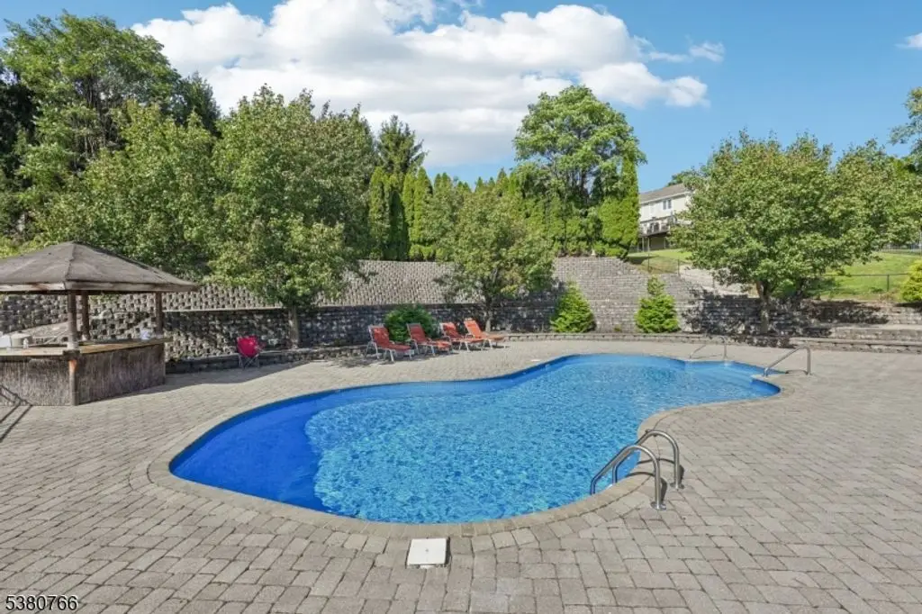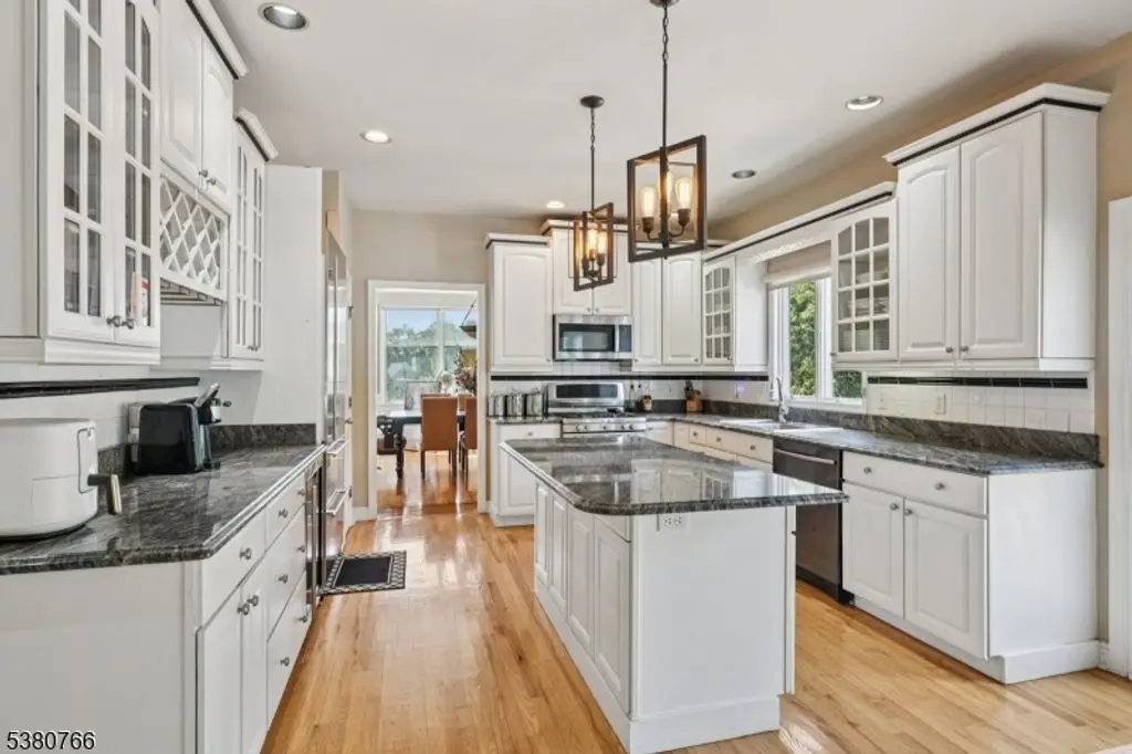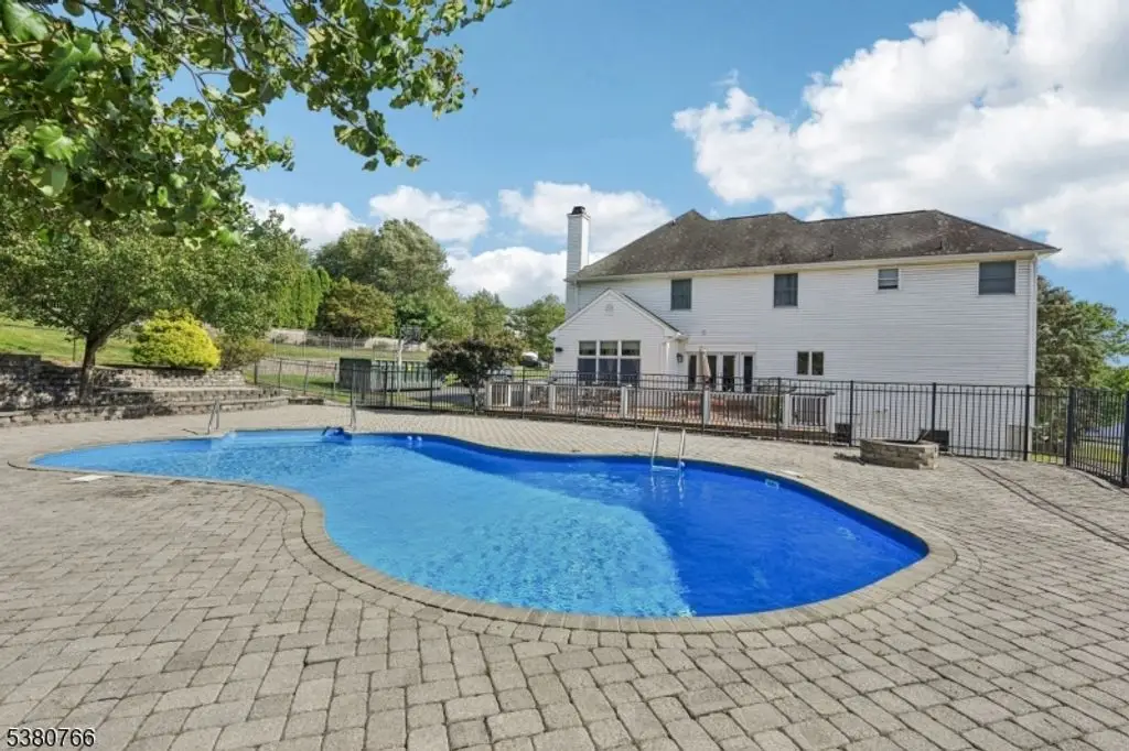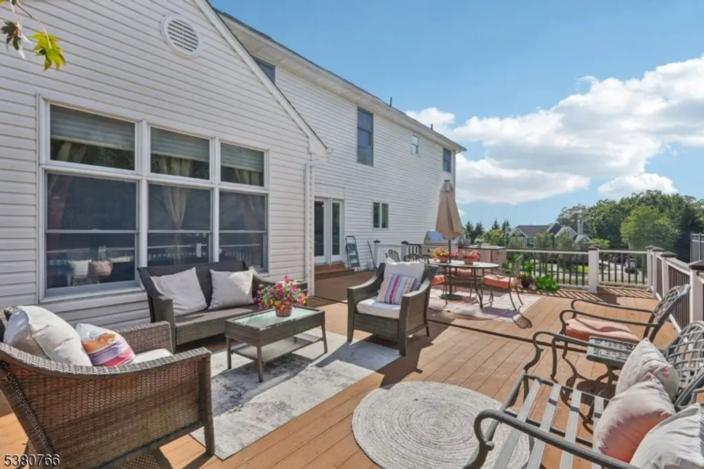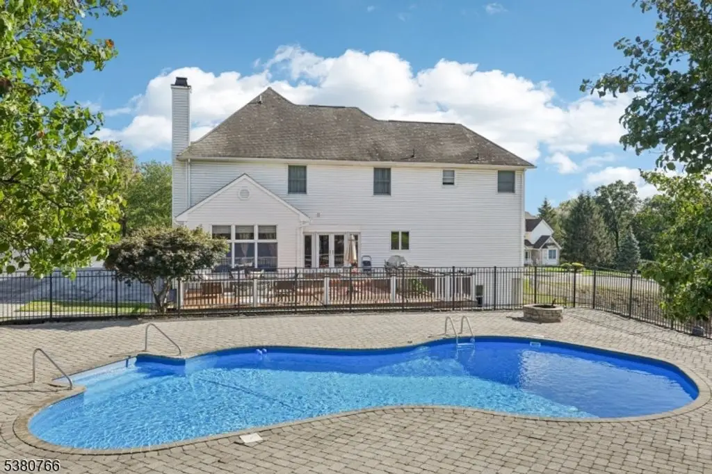 Welcome home to this exquisite 6 bedroom, 5.5 bathroom Colonial, situated on a beautifully manicured lot in the prestigious Cobblestone Woods. Step inside the elegant two-story foyer and be greeted by a sun-drenched living room with soaring vaulted ceilings, expansive windows, and gleaming hardwood floors an inviting space for relaxation and conversation. The open flow continues into the formal dining room, ideal for intimate gatherings or festive entertaining. The heart of the home is the chef's kitchen, showcasing custom cabinetry, marble countertops, premium stainless steel appliances, a center island, and breakfast area. French doors open to an expansive deck, offering the ultimate setting for al fresco dining, grilling, and outdoor entertaining. Unwind in the sophisticated family room with its cozy fireplace and seamless connection to the kitchen. Half bath and laundry complete the level. Upstairs, the luxurious primary suite boasts walk-in closet and spa-inspired en suite, while four additional bedrooms and three bathrooms provide comfort and privacy. The full finished walkout basement offers versatility with a bedroom, full bath, second kitchen, den, and access to the backyard. Step outside to your private retreat featuring a sparkling in-ground pool, patio, and lush yard perfect for play or gardening. A three-car garage and ample parking complete this remarkable property. Experience private luxury living just minutes from NYC transportation, shopping, and fine dining.