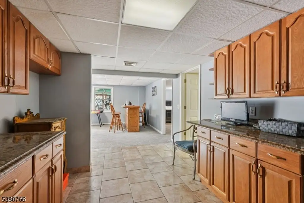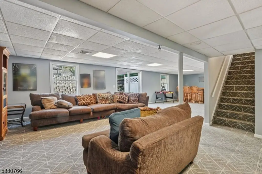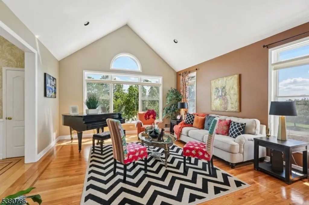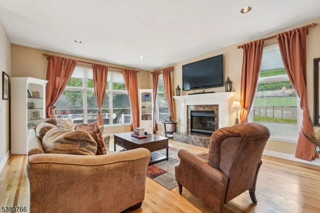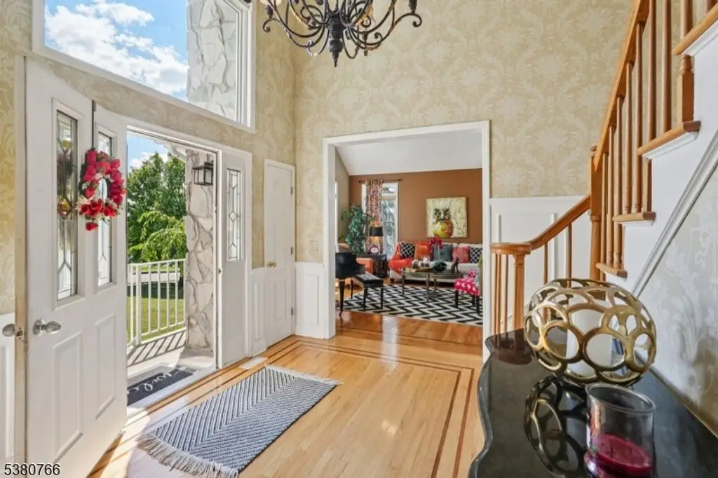 Welcome home to this exquisite 6 bedroom, 5.5 bathroom Colonial, situated on a beautifully manicured lot in the prestigious Cobblestone Woods. Step inside the elegant two-story foyer and be greeted by a sun-drenched living room with soaring vaulted ceilings, expansive windows, and gleaming hardwood floors an inviting space for relaxation and conversation. The open flow continues into the formal dining room, ideal for intimate gatherings or festive entertaining. The heart of the home is the chef's kitchen, showcasing custom cabinetry, marble countertops, premium stainless steel appliances, a center island, and breakfast area. French doors open to an expansive deck, offering the ultimate setting for al fresco dining, grilling, and outdoor entertaining. Unwind in the sophisticated family room with its cozy fireplace and seamless connection to the kitchen. Half bath and laundry complete the level. Upstairs, the luxurious primary suite boasts walk-in closet and spa-inspired en suite, while four additional bedrooms and three bathrooms provide comfort and privacy. The full finished walkout basement offers versatility with a bedroom, full bath, second kitchen, den, and access to the backyard. Step outside to your private retreat featuring a sparkling in-ground pool, patio, and lush yard perfect for play or gardening. A three-car garage and ample parking complete this remarkable property. Experience private luxury living just minutes from NYC transportation, shopping, and fine dining.