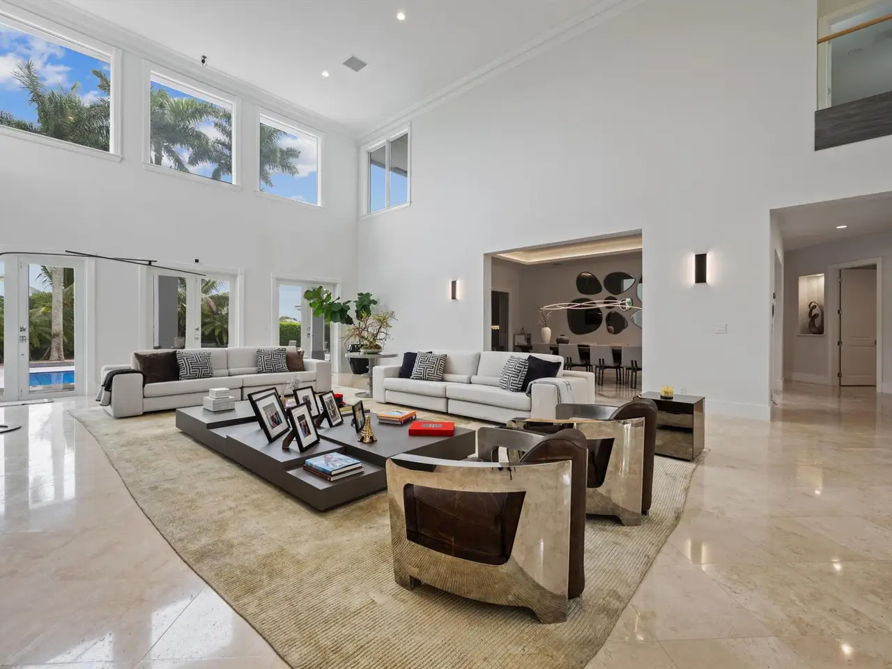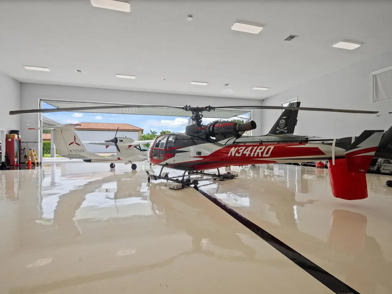 Welcome to Aero Club, an exclusive aviation community boasting its own private runway. This custom-built residence features four bedrooms and six baths (five full and one half), spanning approximately 6,935 sq ft of luxurious living space. Perfectly designed for pilot comfort and entertaining, it sits on the only Runway double-lot (2.05 acres) available for sale and is ready for you to move in.Step outside to discover the pool and inviting beach seating area, a cozy gas fire pit, spa, and sauna. The outdoor living space is enhanced by a climate controlled panoramic view summer kitchen, loaded with high-end BBQ and kitchen appliances, plus a dining area by the pool for effortless al fresco entertaining. Inside, you'll find a remodeled kitchen featuring double refrigerators and freezers, an induction cooktop, and a range hood ideal for culinary enthusiasts. For wine lovers, a sophisticated wine cellar adds an elegant touch to gatherings. Enjoy movie nights in the state-of-the-art home theater, designed for an immersive viewing experience. The property also includes two additional structures: A spacious modern hangar (73' x 69'; 5, 037 sq ft) fully air-conditioned and finished with polished concrete epoxy floors, capable of accommodating multiple aircraft, including the largest jet allowed in the Aero Club. Attached to the hangar is a 1-bedroom, 1-bath guest house with a full kitchen and living area perfect for pilots or visitors. Outside the hangar, a large concrete ramp and a helipad lead to a third structure: a 51' x 53' Hangar Port. Envision parking your airplane under this hangar port and walking into a 2, 120 sq ft under-air space housing an athlete's gym, a conference room and executive office with a half bath, and a 4-car collector's garage. This estate blends luxury, functionality, and endless possibilities. Don't miss the opportunity to own this remarkable property. Schedule a viewing today!