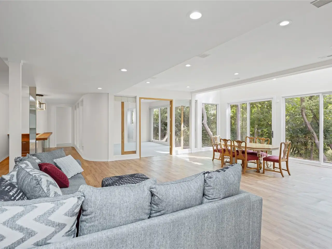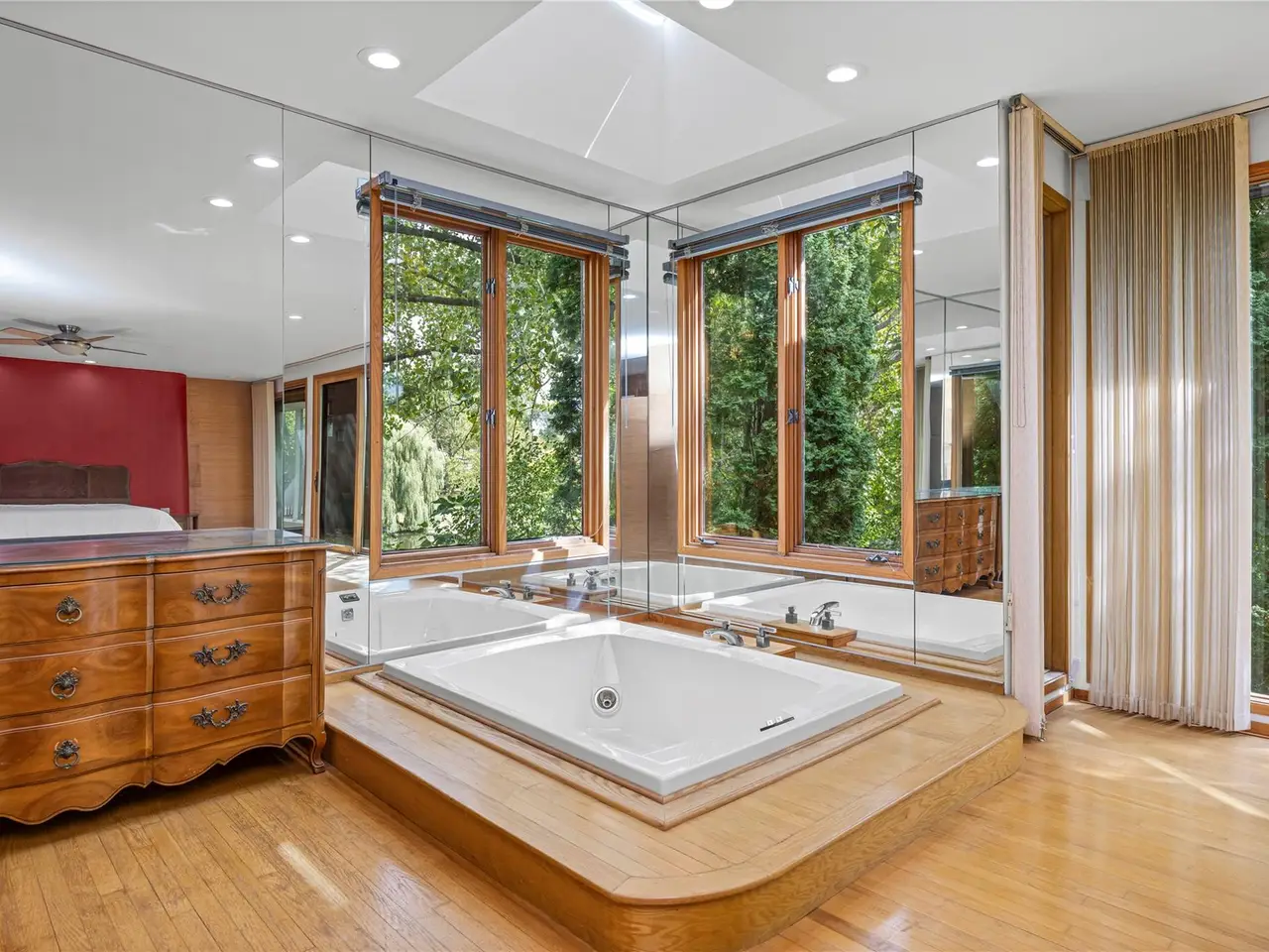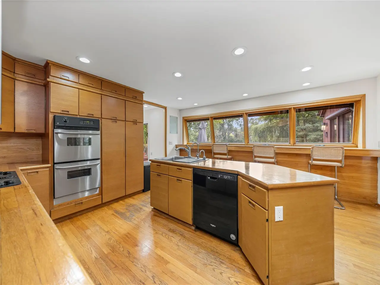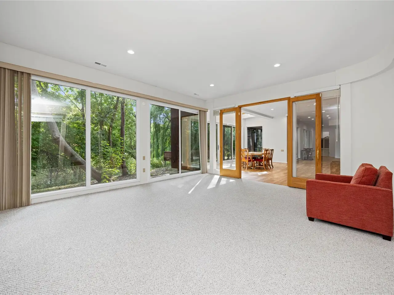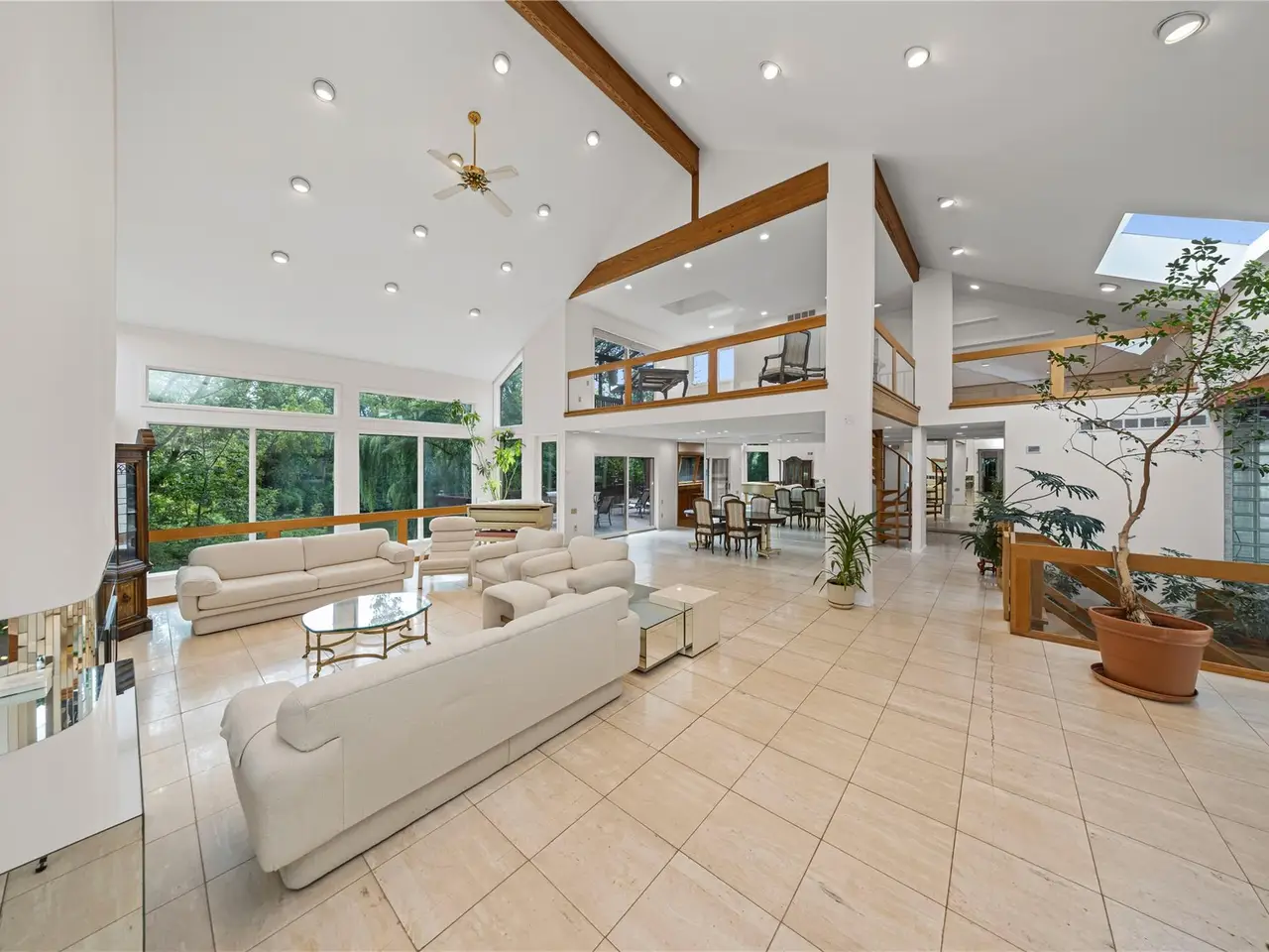 Welcome to this exquisite ranch estate nestled in the heart of West Bloomfield, meticulously designed and crafted by renowned architect David Lubin and being offered by its original owners. This stunning residence seamlessly blends sophisticated architectural elements with luxurious water-front living. Step inside to soaring ceilings in the expansive great room, adorned with floor-to-ceiling windows that showcase breathtaking water vistas. The gas fireplace and elegant travertine flooring create a warm, inviting ambiance perfect for entertaining or relaxing. The gourmet kitchen is a chef’s dream, featuring high-end appliances, abundant cabinet and counter space, a generous walk-in pantry, and an oversized nook/ living room overlooking the tranquil water—ideal for casual dining or a morning coffee. A striking spiral staircase ascends to a versatile loft area, complete with its own gas fireplace, balcony overlooking the water, and panoramic views of the entire first floor. The primary suite offers a private retreat with natural hardwood floors, soaring ceilings, and a private balcony overlooking the water. His and her walk-in closets lead to a luxurious private ensuite. The second main-level bedroom boasts a large walk-in closet, a private ensuite, and versatile space suitable for an office or lounge area. The finished walk-out lower level adds approximately 3,400 square feet of versatile living space, featuring two additional bedrooms, a full bathroom, and a half bath. A spacious entertaining area with floor-to-ceiling windows offers stunning views of the backyard and water, providing an ideal space for relaxation or entertaining. Located in the vibrant West Bloomfield community, this exceptional home is served by the award-winning Bloomfield Hills Schools. Experience luxurious waterfront living in this architecturally and functionally stunning estate.