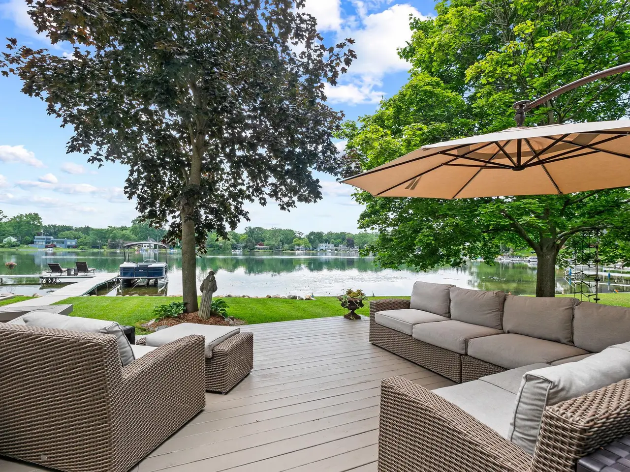 Lakefront living with 65’ of frontage on Green Lake. Take your pontoon out for relaxing, sunset cruises on the electric motor-only lake. A welcoming entry opens to bright living spaces that flow effortlessly outdoors. Glass front door flanked by transom windows. White marble kitchen, stacked stone backsplash, Shaw’s farmhouse sink, six-burner Wolf gas cooktop, hood fan, Kitchen-Aid double oven, GE refrigerator, Whirlpool dishwasher & beverage refrigerator. The open-concept floor plan connects the kitchen to the great room. Natural fireplace. Side-by-side Anderson doorwalls open to the deck for seamless indoor-outdoor entertaining. Hardwood floors throughout the entire home. Flexible floor plan offering an entry-level library/den, which can double as a guest suite as it is adjacent to a full bathroom with a rain shower & glass door. Wake up each morning to panoramic lake views from your primary suite balcony, a perfect setting for your morning coffee! Vaulted ceiling, walk-in closet & built-ins. Two additional bedrooms, one with a loft kids will love! En-suite bedroom with private balcony overlooking the lake. Second-floor bonus room could be used as a secondary primary, family room, exercise room or office, with a full bathroom. Anderson windows capture water views from nearly every room. Epoxy garage floor, additional space for workshop & storage. Extra-wide concrete driveway for guest parking. Surrounded by lush landscaping. Arborvitae lined side walkway to the backyard. Stunning western sunset views. Large lakeside deck, with built-in benches, is the perfect setting for evening cocktails with friends & family. Enjoy conversation & s'mores around the stone fire pit. Rock seawall. L-shaped dock with room for sun loungers, wonderful sandy shoreline. Green Lake Association offers year-round activities for the entire family, with 4th of July fireworks. Very quiet & peaceful setting, Willow Pond Nature Preserve across the street. This home delivers on the lake lifestyle!