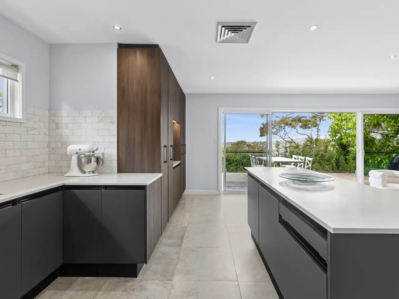 Peacefully positioned down a private driveway, this immaculate family home offers modern comfort and effortless connection to its leafy surrounds. Designed across two spacious levels, it delivers flexibility for family living, with multiple indoor and outdoor spaces that embrace light, air and tranquil outlooks. Upstairs, expansive living and dining areas open to a wide deck capturing open district and ocean views with city glimpses, while the stone-finished kitchen with Miele appliances anchors the home with style and functionality. The master bedroom enjoys an elegant ensuite, walk-in robe and a private garden retreat, joined by a detached studio offering ideal space for a home office or teenagers. Downstairs, a third living zone and three generous bedrooms extend the home's versatility, opening to lush gardens and an entertaining patio. Complete with a double lock-up garage, this is a serene family haven with space for every generation, in a tranquil location that offers easy access to Narrabeen Lake, village shops, quality schools and beaches. - Modern dual-level home quietly placed down a private driveway - Two separate living areas open to alfresco space with long views - Elevated district and ocean glimpses with leafy, open outlooks - Downstairs rumpus opens to covered terrace and landscaped gardens - Detached studio ideal as private home office or teenager's retreat - Premium stone kitchen with Miele appliances and island bench - Corian kitchen bench tops and Carrara marble subway tile splash back - Five bedrooms with built-ins, stylish bathrooms, internal laundry - Main bedroom with walk-in robe, ensuite and private garden retreat - Ducted r/cycle air con upstairs, r/cycle air con unit d/stairs - 14 x solar panels with 5.8kW, battery inverter - Gas bayonets downstairs living and upstairs balcony, plantation shutters - Generously sized lock-up garage with side work space and internal access - 650m to IGA, shops/cafes on Veterans Pde, 1.3km to South Creek Road shops - 450m to public transport, 6.2km to Westfield Warringah Mall - 700m to Wheeler Heights Public School, 2.3km NBSC Cromer Campus - 2.4km to Cromer Golf Club, 2.8km to Pittwater House