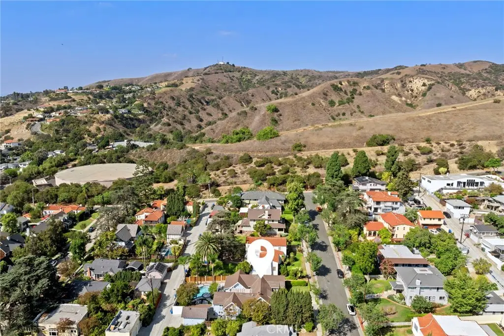 The unique U-shaped design allows nearly every room to open through French doors to a tranquil courtyard, perfect for indoor-outdoor living. The resort-style backyard features low-maintenance turf, a sparkling pool, and multiple entertaining spaces, while the deck offers breathtaking sunset views over the Whittier Hills. The front yard provides a generous grassy area, ideal for play, gardening, or simply enjoying the outdoors.