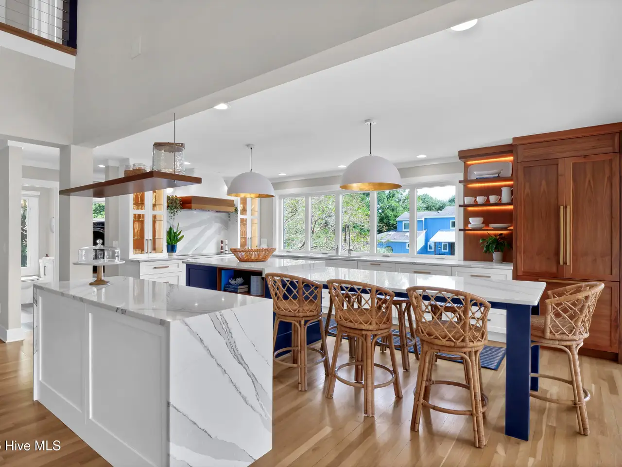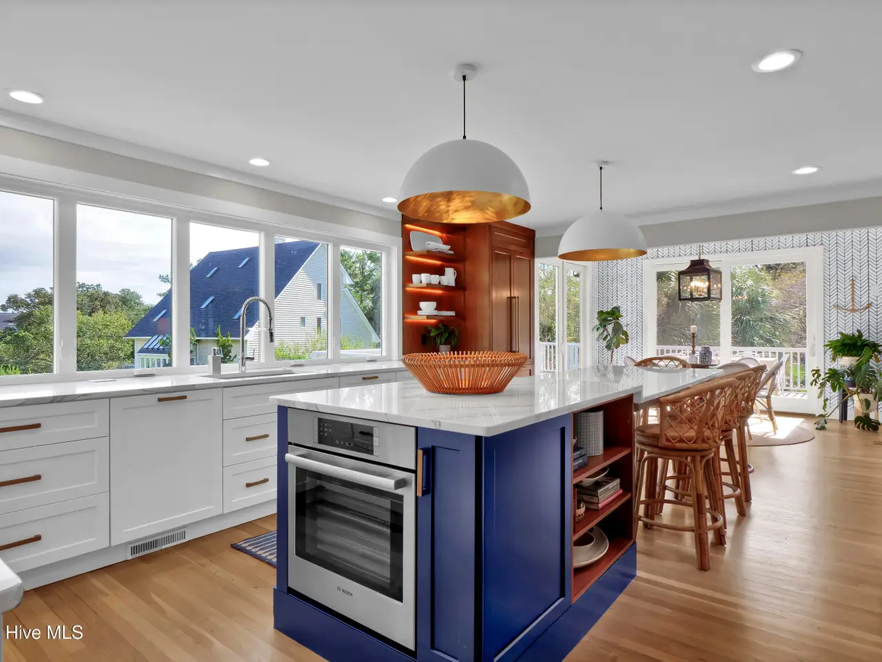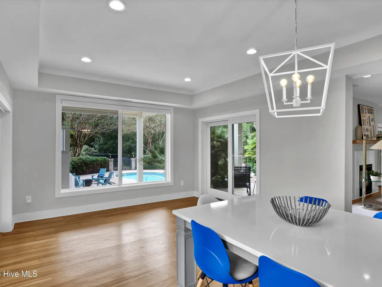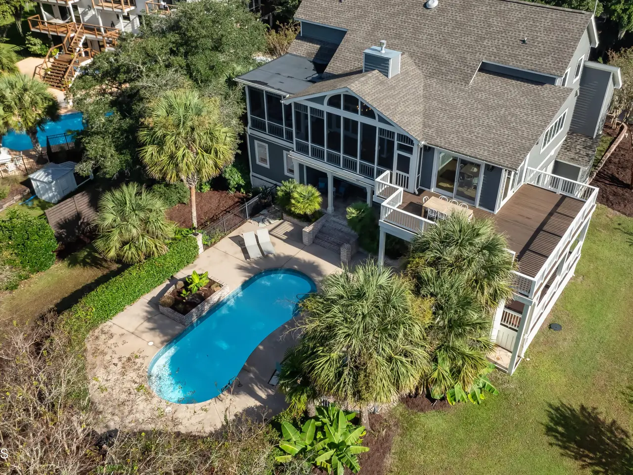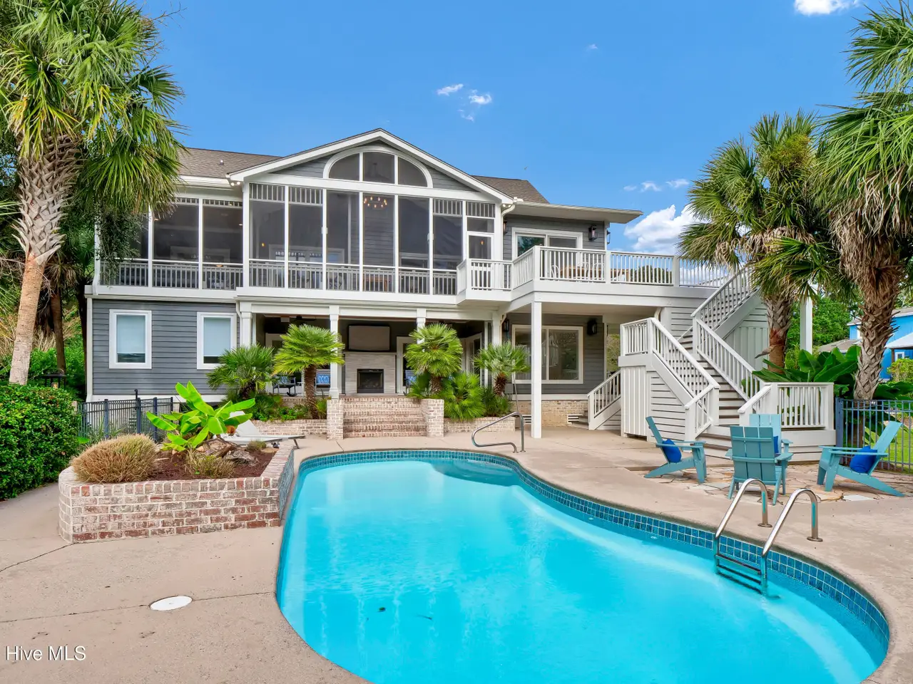 Welcome to your dream home, where coastal retreat meets modern luxury! Boating and entertaining awaits you, with this rare .75 acre property including an assigned 30' BOAT SLIP, saltwater pool, hot tub, outdoor shower, outdoor fireplace, surround sound and Control 4 AV equipment, large screened in porch, and newly renovated decks boasting a view of the magnificent intracoastal waterway! With a complete interior renovation, this stunning home boasts Bosch appliances in first and second floor kitchens, with custom walnut refrigerator doors in primary kitchen that match custom walnut open shelving and walnut cooktop hood. Also featured are Quartz countertops throughout, including Cambria Quartz, and a walnut custom double sink vanity in the primary ensuite. Natural white oak hardwoods, with water base sealer carry throughout the entire home and new tile was added in all baths and laundry. Gas fireplaces will warm the space in both living rooms, with a double sided interior-exterior gas fireplace on the first floor, that can be enjoyed on the patio, overlooking the beautiful saltwater pool. Additional impressive features include an intracoastal waterway view, hot tub, cable rail stairwell throughout, Hunter Douglas shades, lighting brands such as Serena and Lily, Hudson Valley, and Rejuvenation, Restoration Hardware pulls and hooks, and a touch of Serena and Lily wallpaper to complete the modern coastal aesthetic.Nothing was left untouched as the exterior was painted, all decks were stained, wood porch ceilings were refinished, and all exterior lighting and fans were replaced.Additional Updates Include:New main house HVAC unit in 2023.New whole house water filtration system in 2024.After an evening of entertaining your family and friends in your own coastal paradise, enjoy a sunset cruise on the intracoastal waterway, with a boat ride to Masonboro Island or nearby restaurant. This home truly has it all!