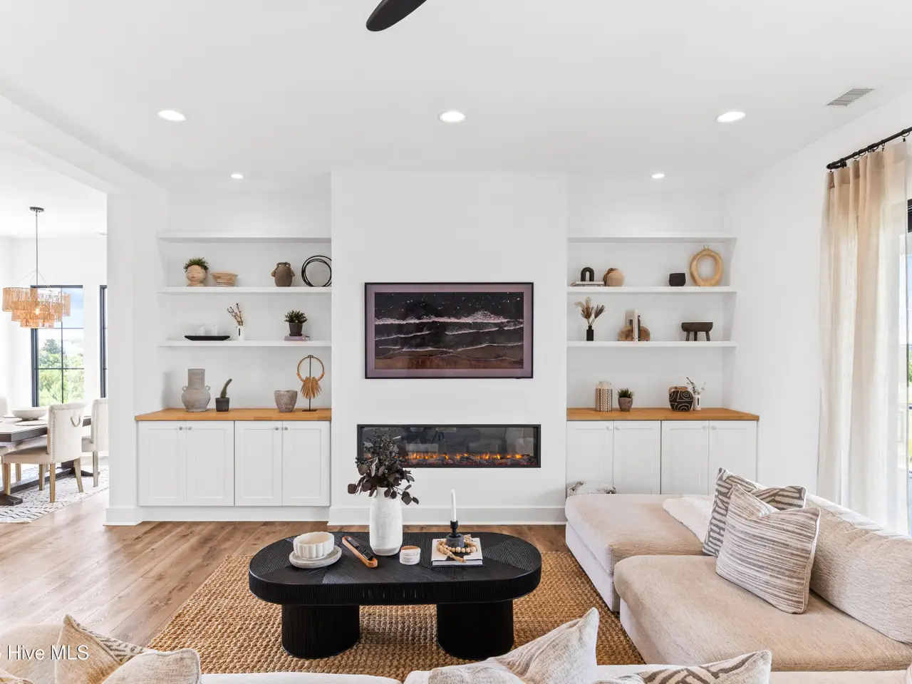 DP-Rated glass walls with linear fireplace
