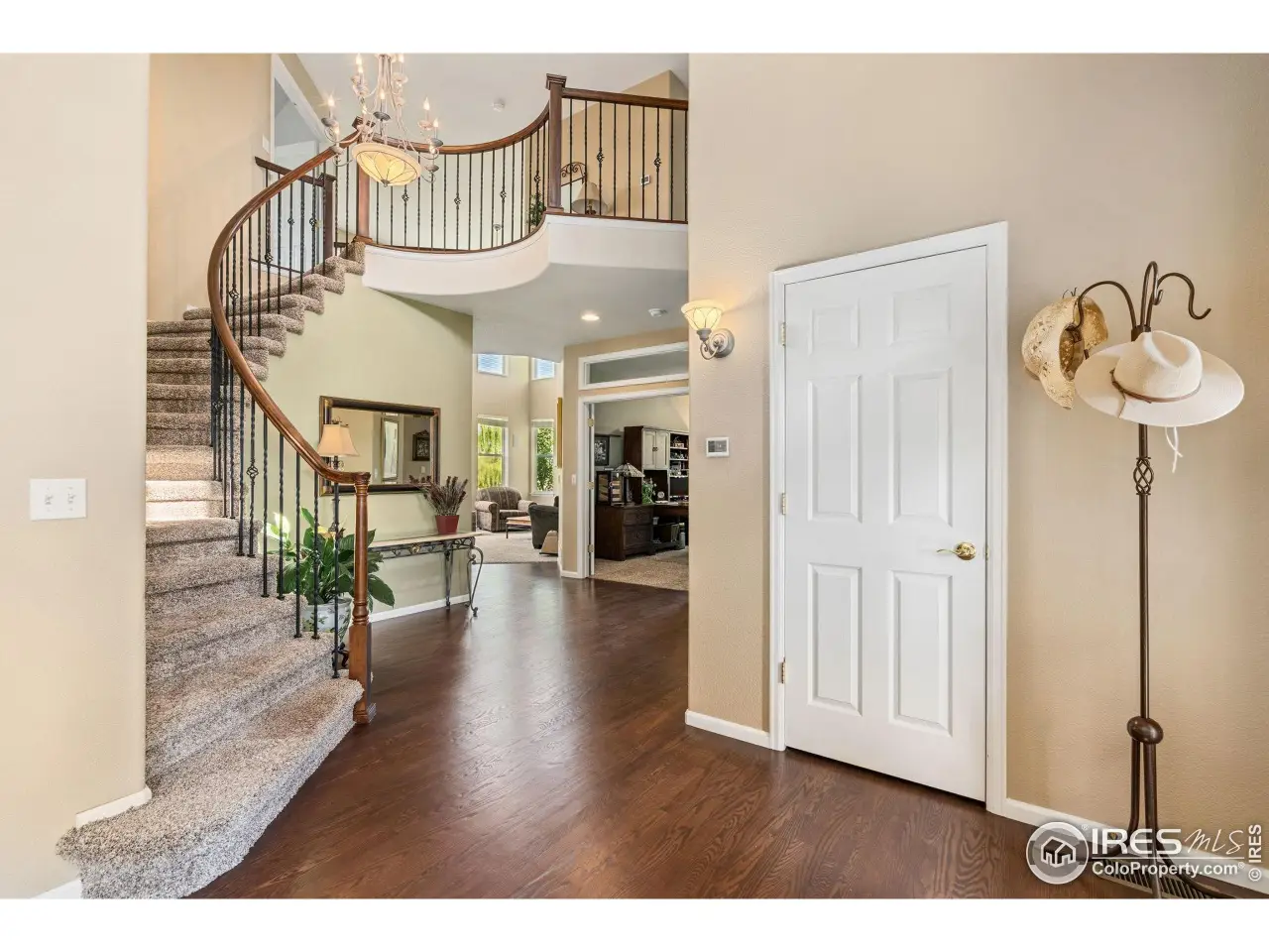 Welcome home to this beautifully appointed two-story in the highly sought-after Steeplechase subdivision! Perfectly situated on a rare 2-acre equestrian lot within Windsor city limits, this property offers incredible mountain views, room for up to two horses, and the ability to build an outbuilding-bring your toys, there's space to spread out and enjoy! A newly seal-coated circle driveway and irrigated mature landscaping-with over 50 trees-elevate the curb appeal and functionality of this already impressive property. The charming home features a wraparound front porch, vaulted ceilings, and a thoughtfully designed layout filled with natural light and custom details throughout. The main level offers a formal living room, a dining room with a butler's pantry, and a spacious island kitchen with double wall ovens. Sliding doors off the kitchen lead to the expansive back deck-complete with a pergola-making it ideal for outdoor entertaining. The stunning two-story family room boasts a gas fireplace and soaring ceilings, creating a warm and inviting space to gather. Upstairs, the primary suite features double-door entry, a cozy double-sided fireplace, and a spacious layout. Two additional bedrooms share a full bath, while a fourth bedroom includes a private en-suite. The finished basement offers a fifth bedroom and additional space to customize to your needs. Additional highlights include a large utility/mudroom, curved staircase, oversized 3-car garage, newer AC (July 2022), new furnace (Jan 2024) and water heater, and NO Metro Tax. Enjoy the convenience of being close to shopping, restaurants, golf courses, and I-25 - all while having the space and freedom of country living.