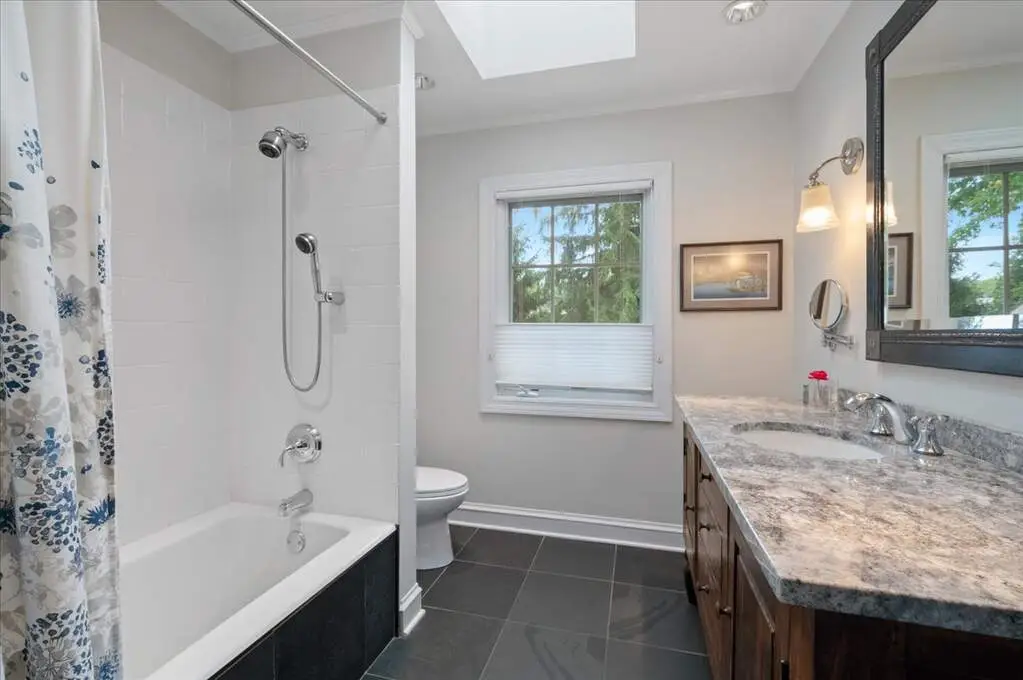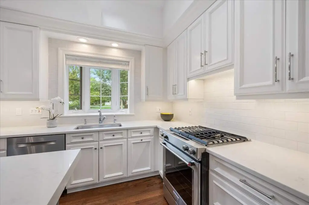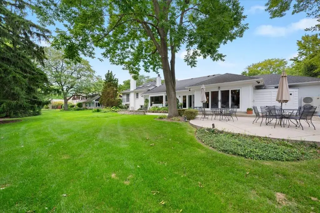 This timeless 4 bedroom 3.1 bathroom white brick split-level home sits on a beautifully landscaped 1/2-acre lot on a quiet, private street. A true Winnetka gem- this Hemphill home has 3,800 SF! The property offers the rare convenience of both an attached garage and a circle driveway, with a welcoming bluestone walkway leading to the front door. Inside, a bright foyer opens to sun-filled living spaces with southern exposure and sweeping views of the backyard. The living room, anchored by a gas fireplace and bay window, flows seamlessly into the dining room and family room, where sliders open to the patio for easy indoor-outdoor living. The updated kitchen is a standout, with vaulted ceilings, beams, skylights, white quartz countertops, new appliances, modern lighting, and fresh hardware, and connects to a mudroom with first-floor laundry. The split-level layout checks every box: just eight steps up to three spacious bedrooms and two updated full baths, including a primary suite with a private balcony overlooking the backyard. Eight steps down leads to a bright ground level with a large recreation room, walk-out patio, a fourth bedroom, renovated full bath, and utility room. Thoughtful updates include newer windows, dual 2023 HVAC systems, and a 2025 water heater. Additional features include a pull-down attic for abundant storage and an attached garage with a dedicated storage shed. Outdoor living shines with multiple patios, mature trees, and expansive green space-a true half-acre retreat in the village. A sprinkler system keeps the grounds lush and green. The 136-foot-wide lot provides privacy and space rarely found at this price point, where most Winnetka lots are only 50 feet wide. All of this in an unbeatable walk-to-everything location-just steps from neighborhood schools (K-8), as well as Skokie Playfield's tennis courts, baseball fields, hockey rink, and park amenities. Plus taxes are under $18k.