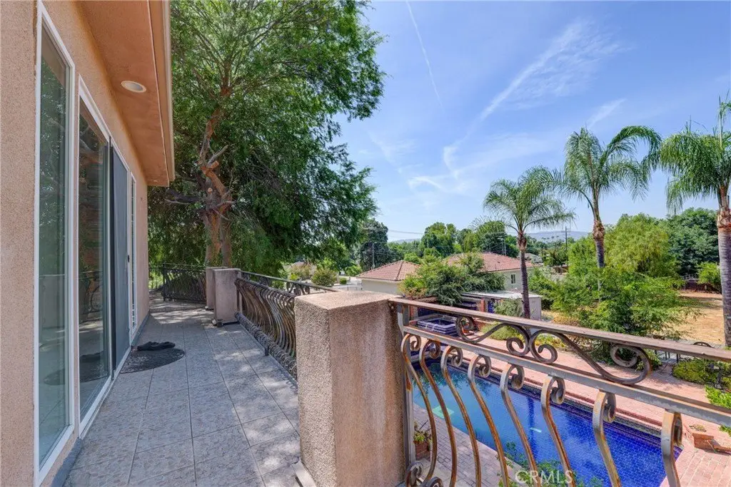 Set on a quiet, tree-lined street, this stunning 6,250 sq ft residence, rebuilt in 2007, sits on a sprawling 22,804 sq ft lot. Designed for both luxurious living and seamless entertaining, the home features 6 bedrooms, 7.5 bathrooms, and a flexible bonus room—two bedrooms and the bonus room are conveniently located on the main level. Enter through grand double doors into an impressive foyer with vaulted ceilings, elegant crown molding, and a formal living room with a striking marble fireplace. The gourmet kitchen, inspired by French design, includes custom European Craftsman cabinetry, granite countertops, a large center island, and high-end Sub-Zero and Wolf appliances. A cozy breakfast nook overlooks the expansive backyard with a sparkling pool—perfect for both entertaining and peaceful moments. Upstairs, an antique wrought-iron staircase leads to four spacious bedrooms, including the opulent primary suite with a private balcony, dual walk-in closets, and a fireplace. Additional highlights include marble flooring throughout the first level, an integrated sound system, a fully gated semi-circular driveway, a 3-car garage, and energy-efficient solar panels. With a perfect blend of classic elegance and modern convenience, this home offers unparalleled living in one of Woodland Hills' most coveted neighborhoods. Owner may consider seller financing or lease options.