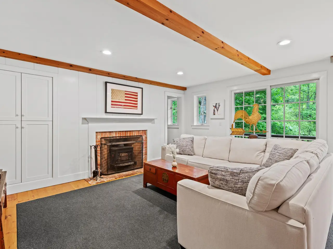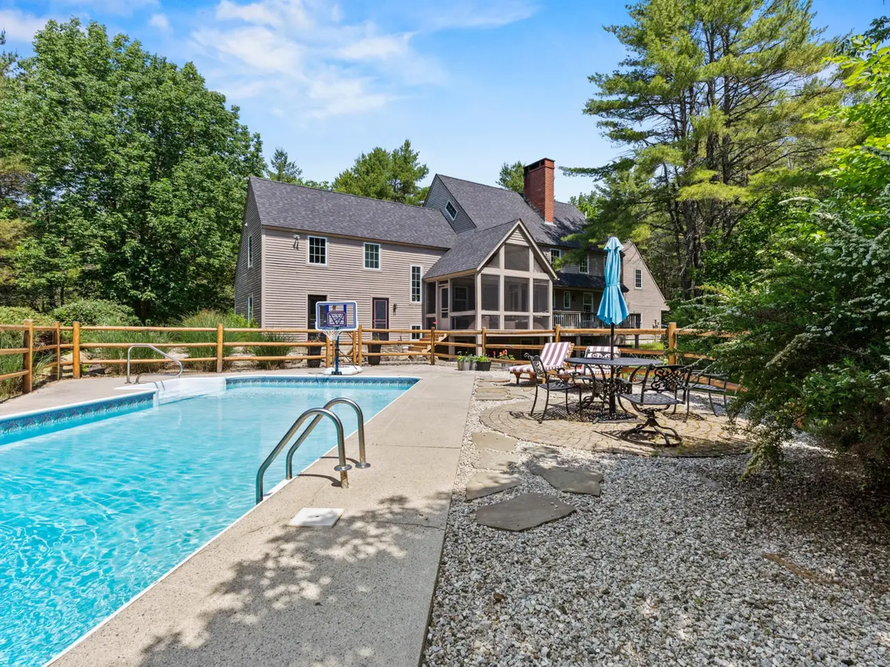 Nestled on 9.21 acres of wooded land, this beautiful property offers the perfect blend of privacy, comfort, and convenience - just a few minutes drive to Yarmouth Village and steps to Pratt's Brook Park, with its 220 acres and six miles of walking and cross-country skiing trails. A winding 600-foot driveway leads you from Ledge Road to a meticulously maintained farmhouse, architecturally designed and built in 2000. Encompassing over 3,800 square feet across three levels, this home provides generous living spaces and indoor parking for three vehicles. The first floor welcomes you with a relaxed, open-concept layout featuring a large kitchen with a center island and walk-in pantry, adjoining a spacious dining area and cozy family room with a wood stove. Just beyond, a screened three-season porch overlooks the backyard and the heated, in-ground pool-perfect for entertaining or quiet summer evenings. A separate living room with a wood-burning fireplace, mudroom entry, and half bath complete the main level. Upstairs, you'll find four spacious bedrooms, including a serene primary suite with a walk-in closet, renovated master bath, and a private adjoining office. Two additional fully updated bathrooms serve the other bedrooms, offering comfort and modern convenience for family or guests. The lower level consists of 550 square feet of finished gym/playroom and a full, separate workshop. The home also includes a central air conditioning system. An adjacent 3.12-acre parcel is also available for purchase at a reduced rate to the buyer of this property, providing the opportunity to expand or develop one or two additional lots. Located in the desirable Ledge Road neighborhood, this home offers a rare combination of seclusion, natural beauty, and community, just minutes from Yarmouth's award-winning public schools and charming village amenities.