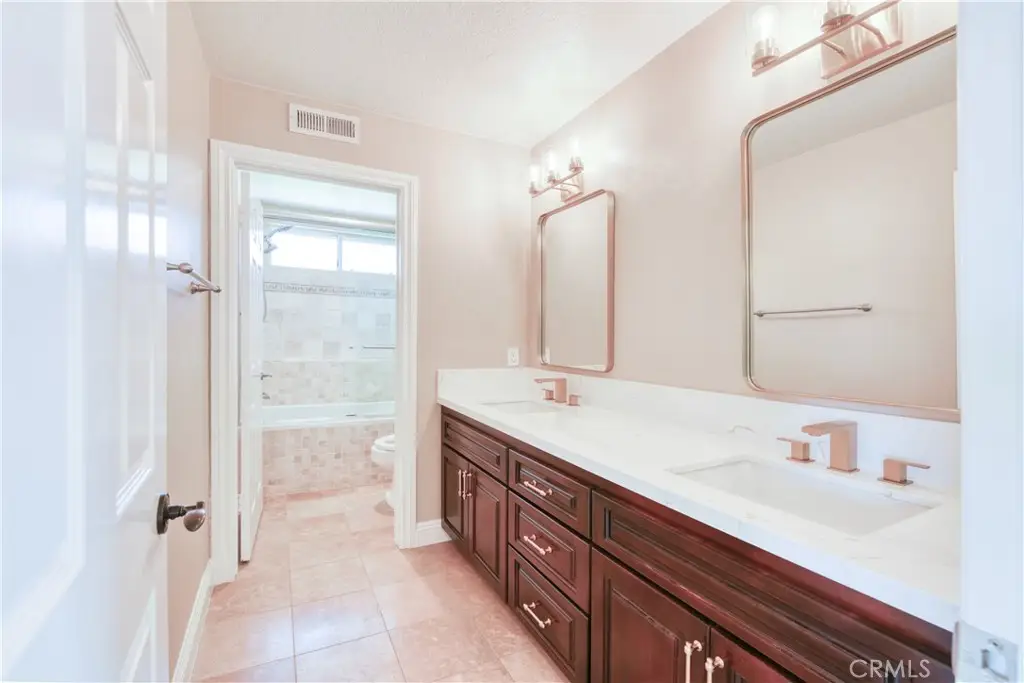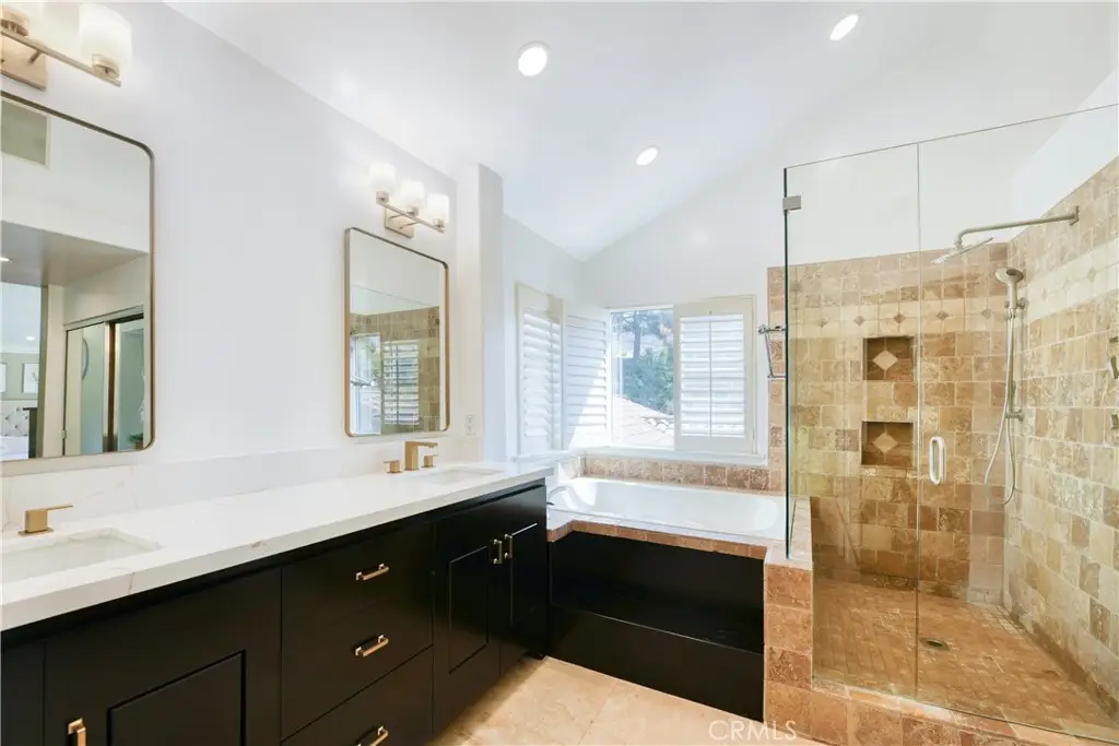 • Spa-inspired bathroom with dual quartz vanities