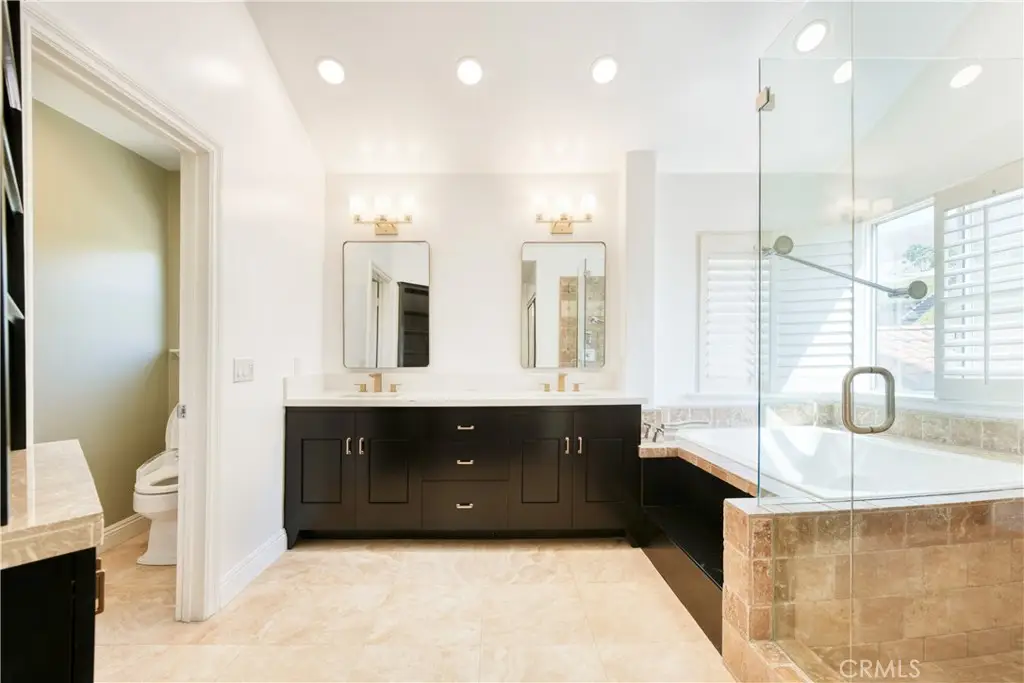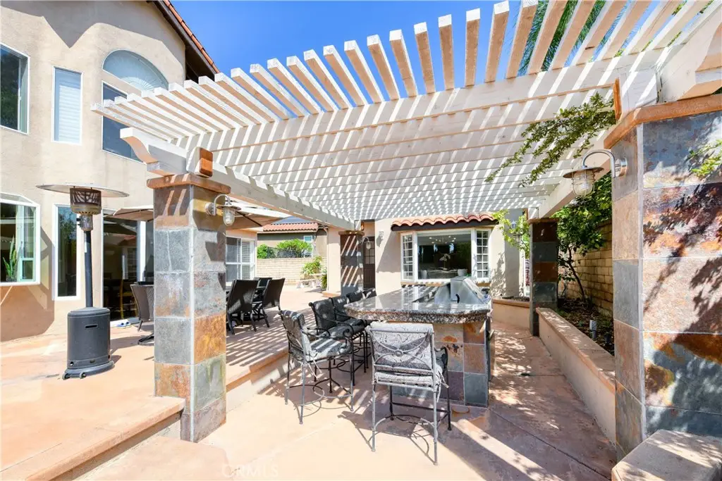 Welcome to this exquisite two-story view home nestled in the prestigious Yorba Linda Hills, offering a perfect blend of luxury, comfort, and functionality on an expansive 11,000 square foot lot. The main residence spans 2,465 square feet and showcases three spacious bedrooms and 2.5 beautifully updated bathrooms, complemented by a detached 500-plus square foot casita with its own full bath--ideal as a private in-law suite, guest retreat, home office, or entertainment space. Upon entry, the grand foyer with soaring cathedral ceilings and abundant natural light leads into an elegant living and dining room enhanced by custom wood shutters and timeless tile flooring throughout. The gourmet kitchen is a chef's dream, featuring high-end quartz countertops, a full suite of luxury appliances including Sub-Zero built-in refrigerator, Dacor convection oven and microwave, Fisher & Paykel DishDrawer, Kohler pot filler, custom tile backsplash, and extensive cabinetry for maximum storage. The kitchen seamlessly opens to the oversized family room with a cozy fireplace and wall of windows overlooking the resort-style backyard with sparkling pool, spa, and built-in BBQ under a covered patio--perfect for year-round entertaining. Upstairs, the luxurious primary suite boasts vaulted ceilings, dual walk-in closets, and a spa-inspired bathroom with dual quartz vanities, frameless glass shower, and Whirlpool Hydrotherapy tub, while two additional large bedrooms with dual-paned windows and a full bath with quartz counters complete the upper level. Additional highlights include convenient inside laundry, a spacious 3-car garage, RV parking, and a flat usable lot with endless potential. With no HOA fees, no Mello Roos, and zoned for top-rated Bryant Ranch Elementary, Travis Ranch Middle, and Yorba Linda High School, this property represents the ultimate opportunity to experience upscale California living in one of Yorba Linda's most desirable neighborhoods.